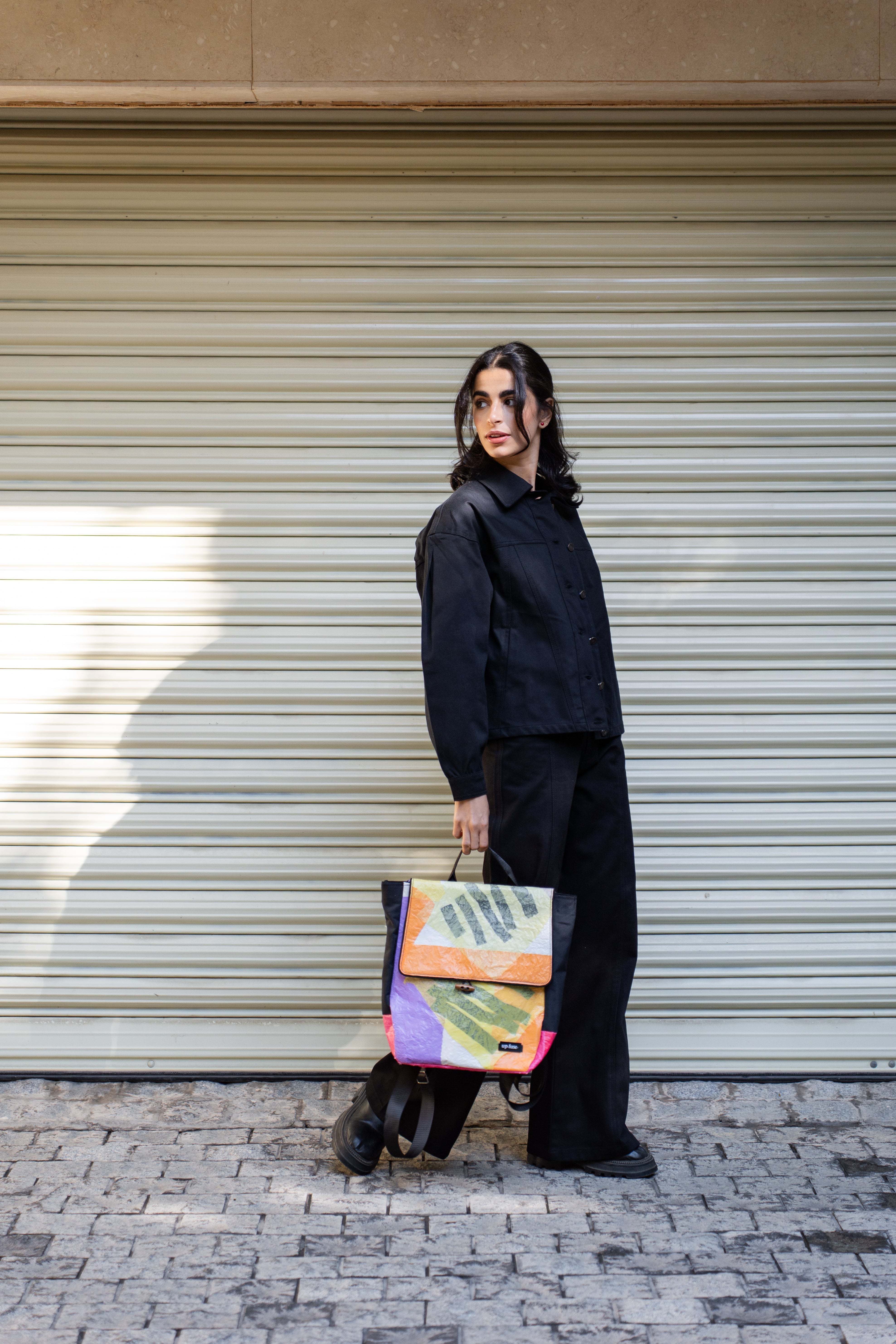 Because they're handmade, none of our pieces look 100% alike so please note that the one you receive may slightly differ from the picture. Each plastic sheet we use as part of our upcycling process is unique, making each of our pieces one of a kind just like their owners. Enjoy your individualized purchase!