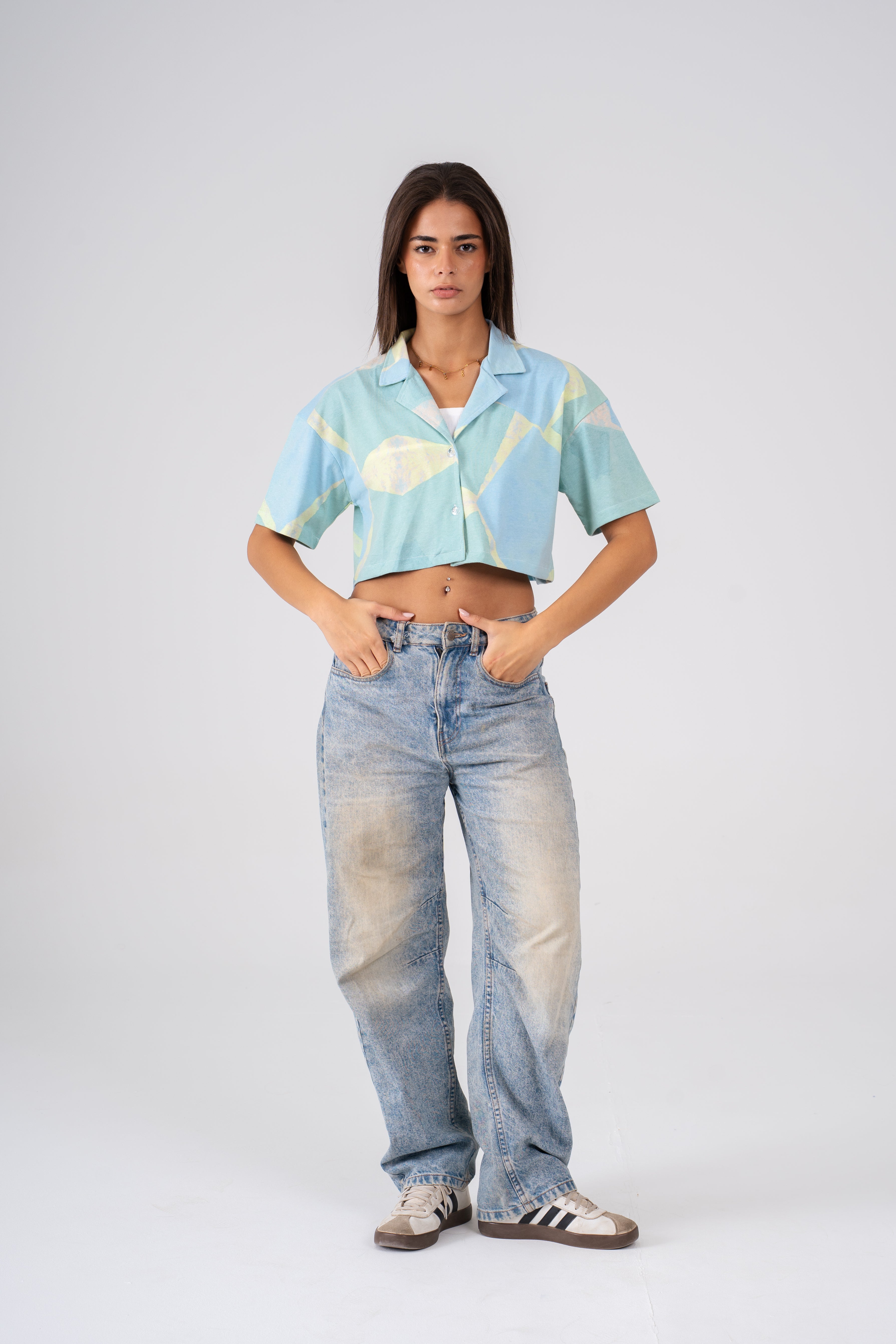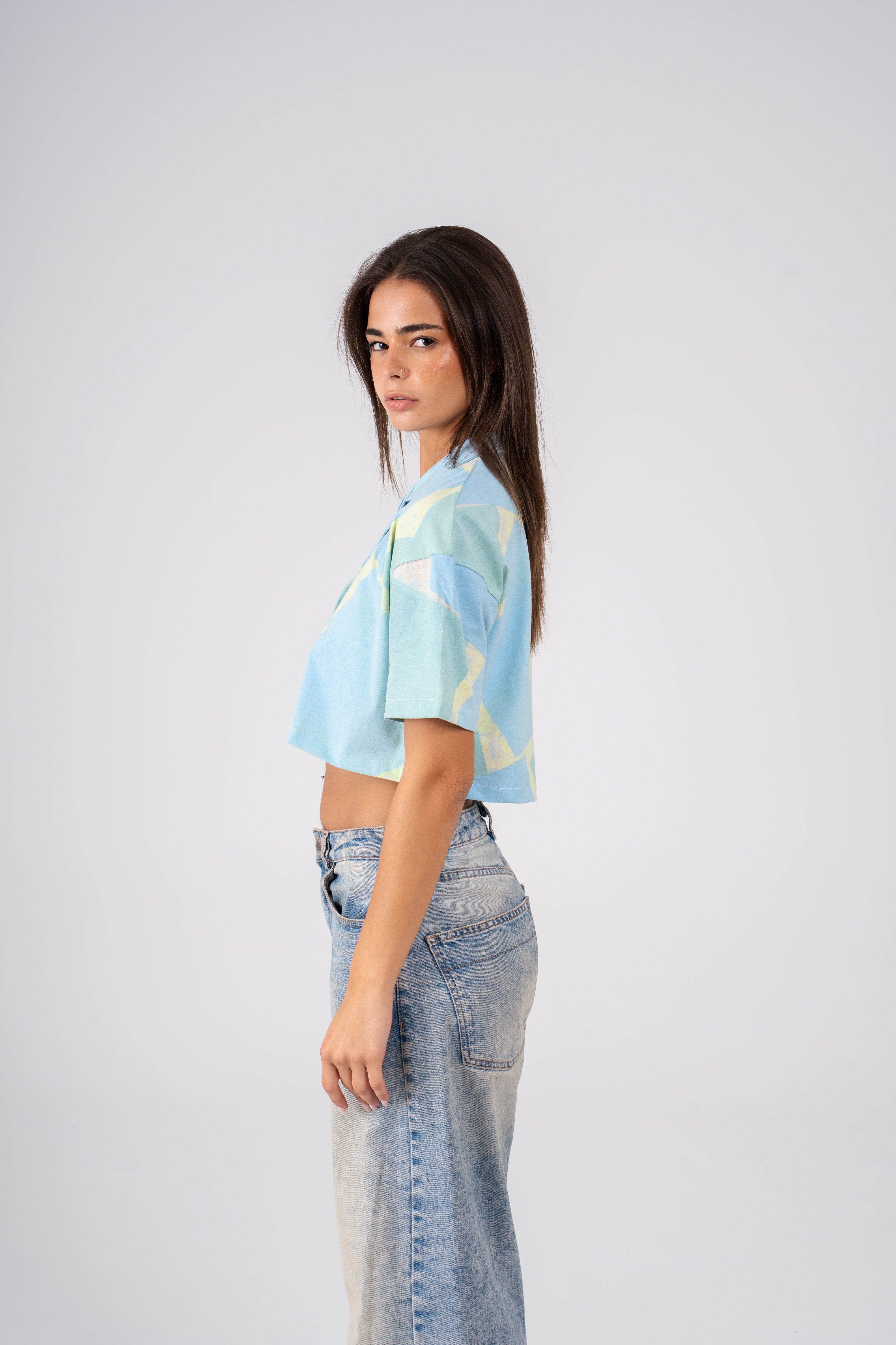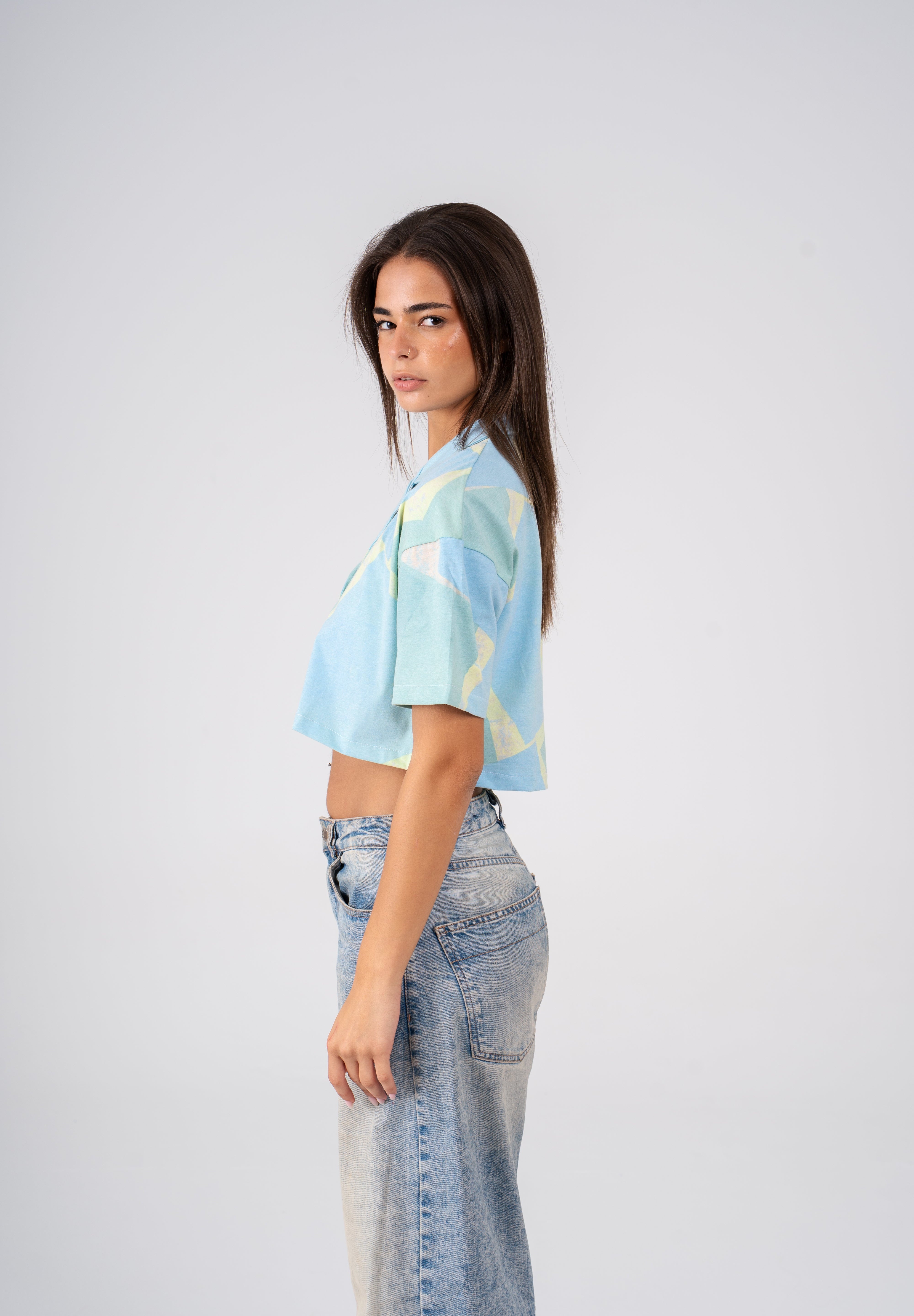 The Cropped shirt is designed for the hot summer season, its eye-catching design blends shades of green for a standout look that compliments any outfit. Its lightweight fabric is perfect for keeping you cool for hot beach days.