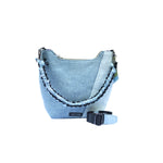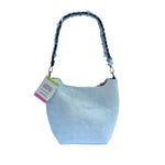 Introducing the Denim Affair Mini Luna in Ice Blue, a charming and eco-friendly accessory that adds a refreshing pop of color to your style. Expertly crafted from upcycled denim, this mini bag features a beautiful ice blue shade that brings a cool and calming vibe to any outfit. Designed with practicality in mind, it includes a durable metal zipper, a macrame cord handle, and an extra adjustable crossbody strap for versatile carrying options. Inside, you’ll find a convenient card holder pocket to keep your essentials organized. Available in two sizes, the Denim Affair Mini Luna in Ice Blue is the perfect companion for casual outings or special events, allowing you to express your style while making a sustainable choice.