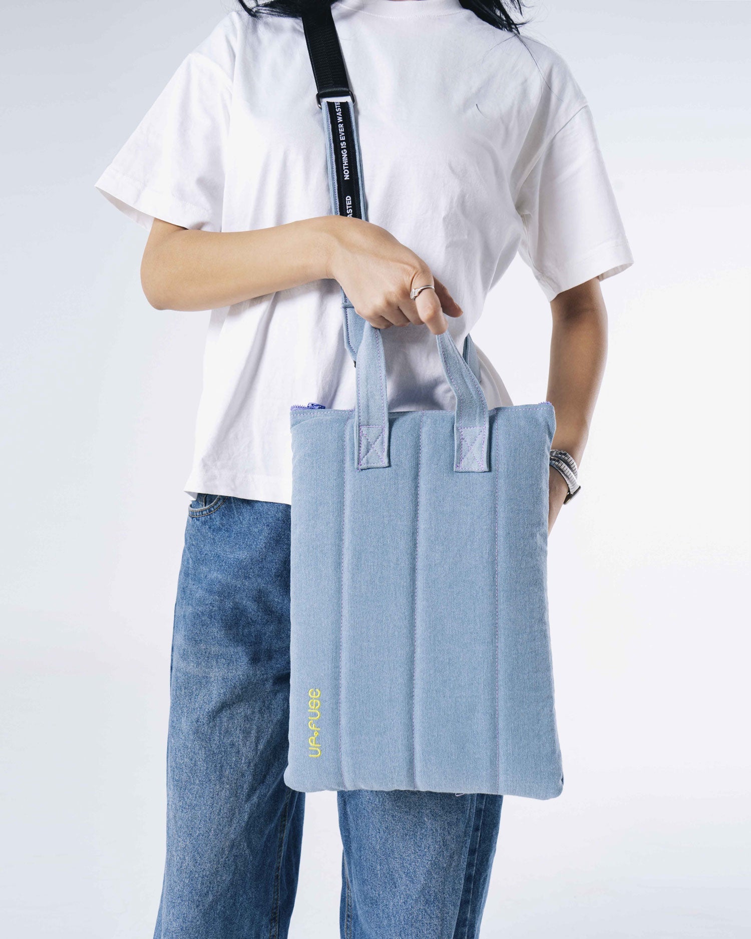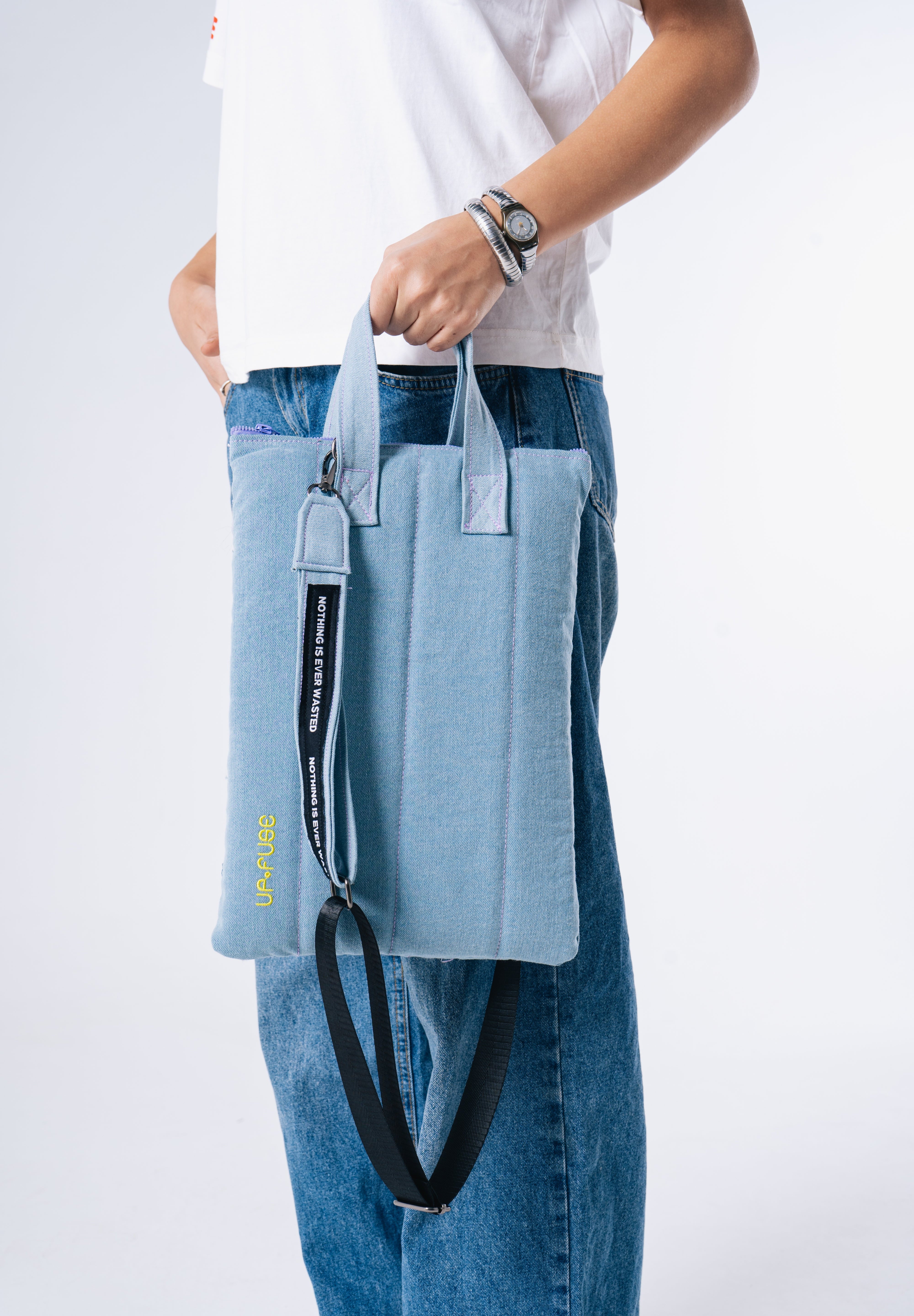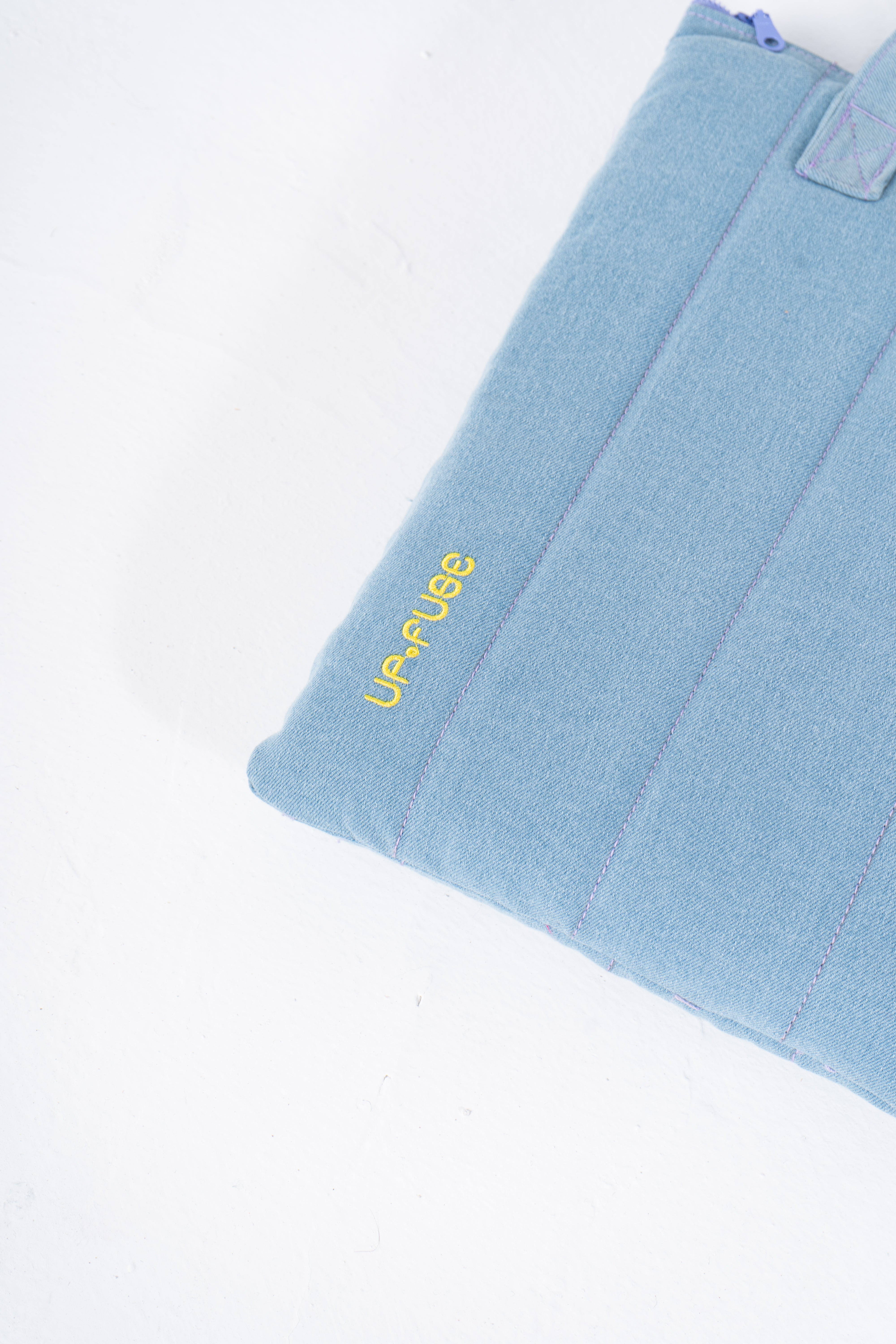 Introducing our Denim Portrait Laptop Sleeve, a stylish and sustainable solution for protecting your tech. Crafted from repurposed denim, this laptop sleeve combines durability with eco-friendly design. Available in three versatile colors—Blue, Ice Blue, and Black Denim—each sleeve offers a sleek, modern look with the timeless appeal of denim. The interior is lined with a soft, padded material to safeguard your laptop from scratches and bumps, while the secure zip closure ensures your device stays safely in place. With its slim profile and sophisticated design, this laptop sleeve is perfect for professionals and students alike, making a statement in both style and sustainability.