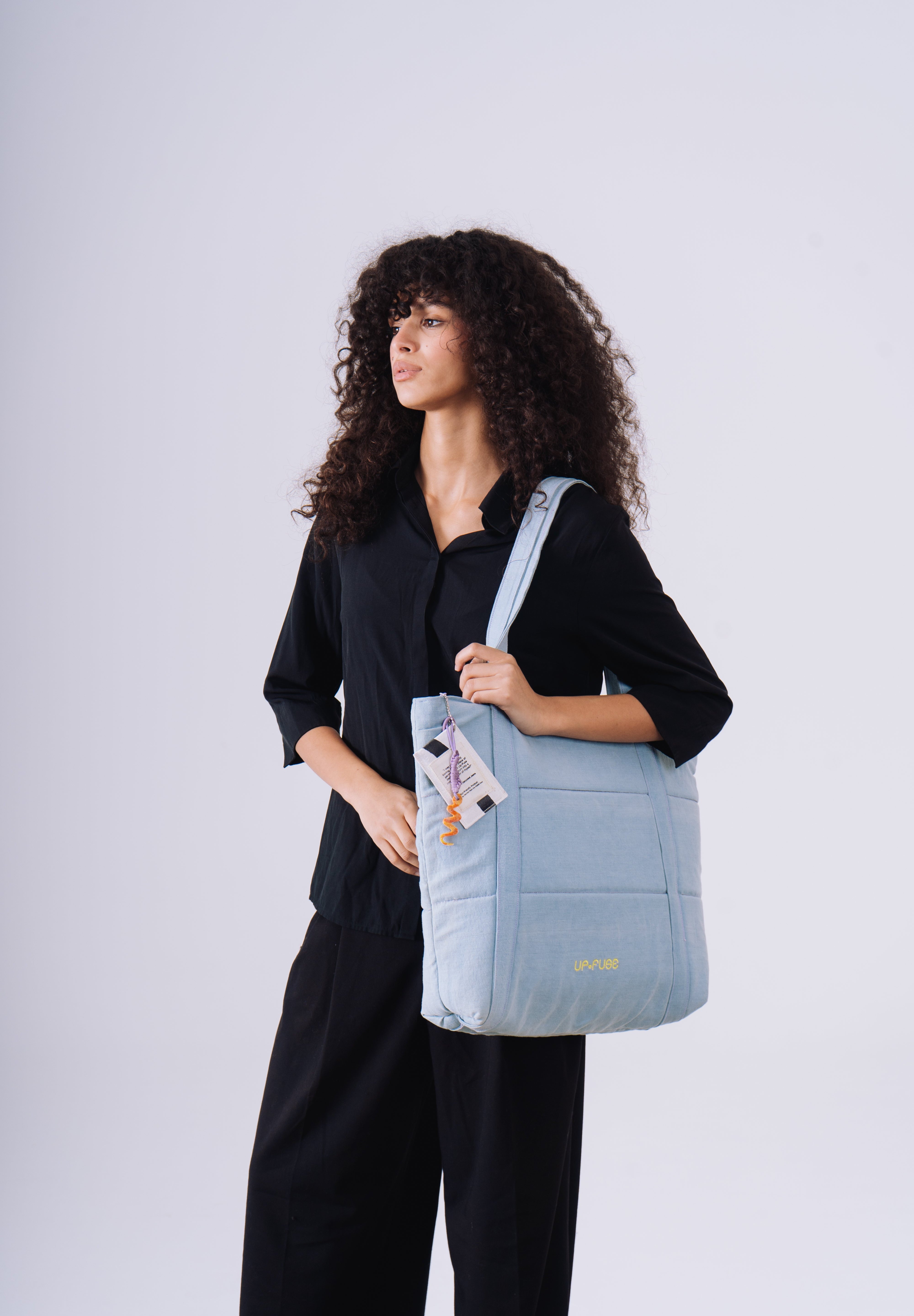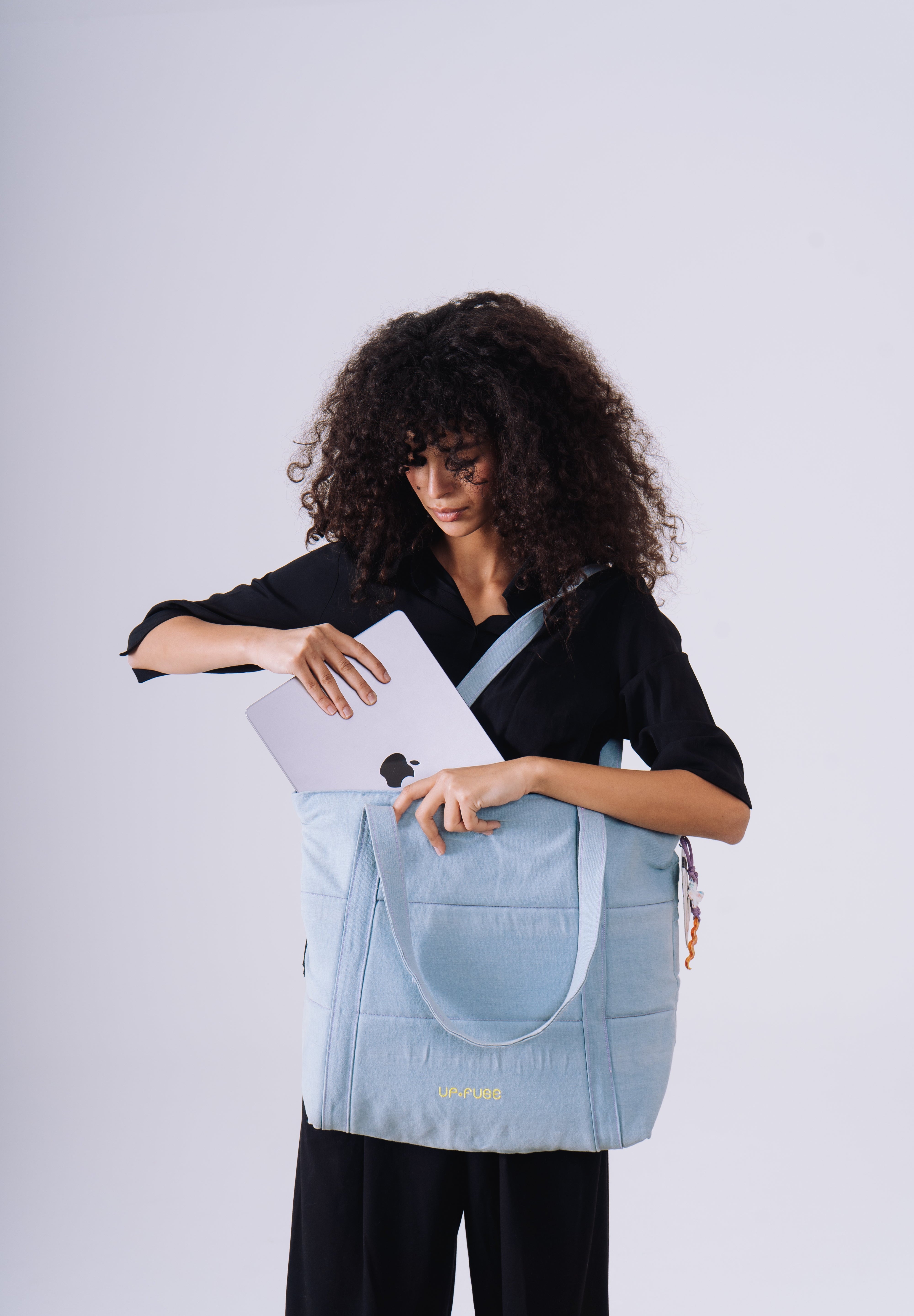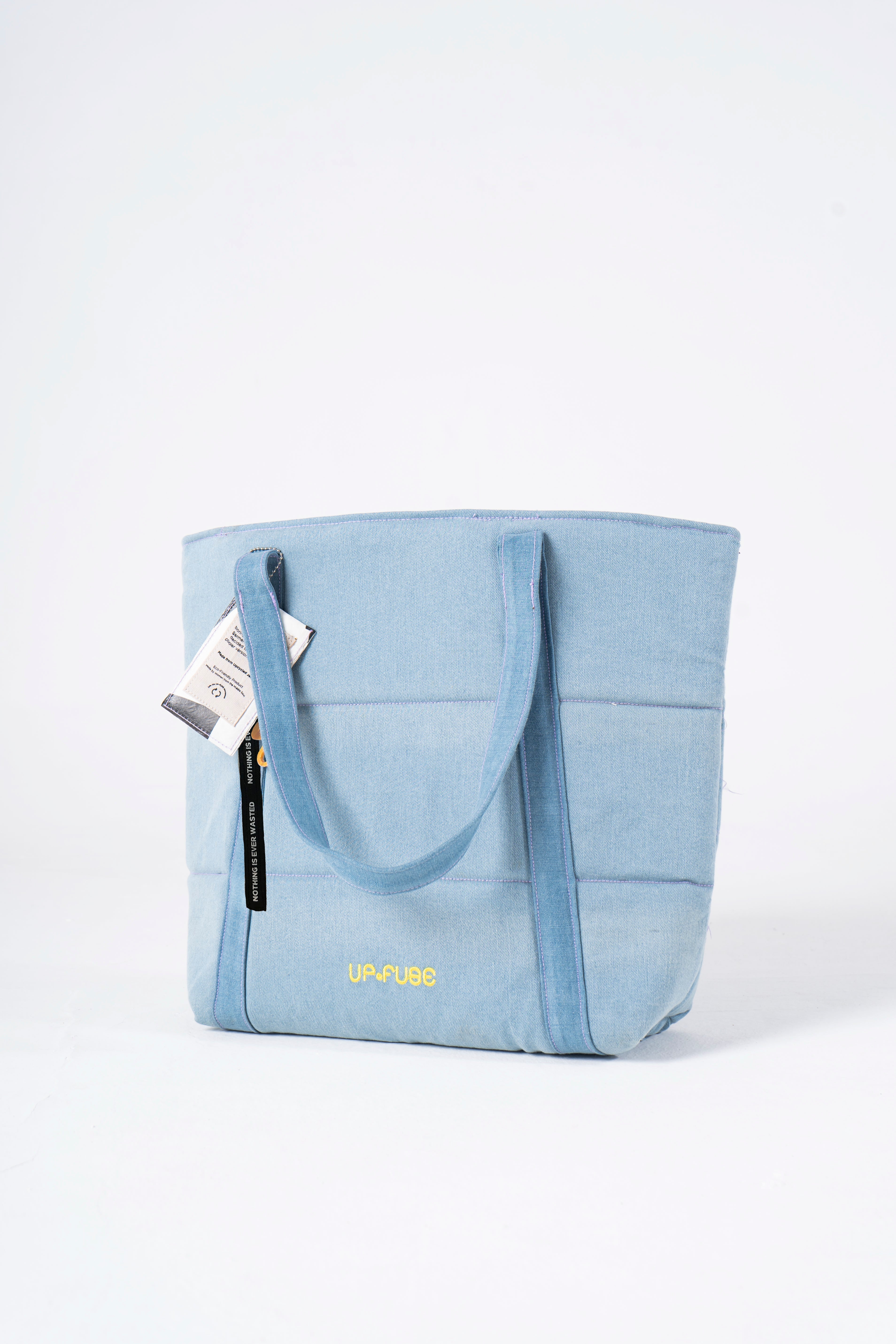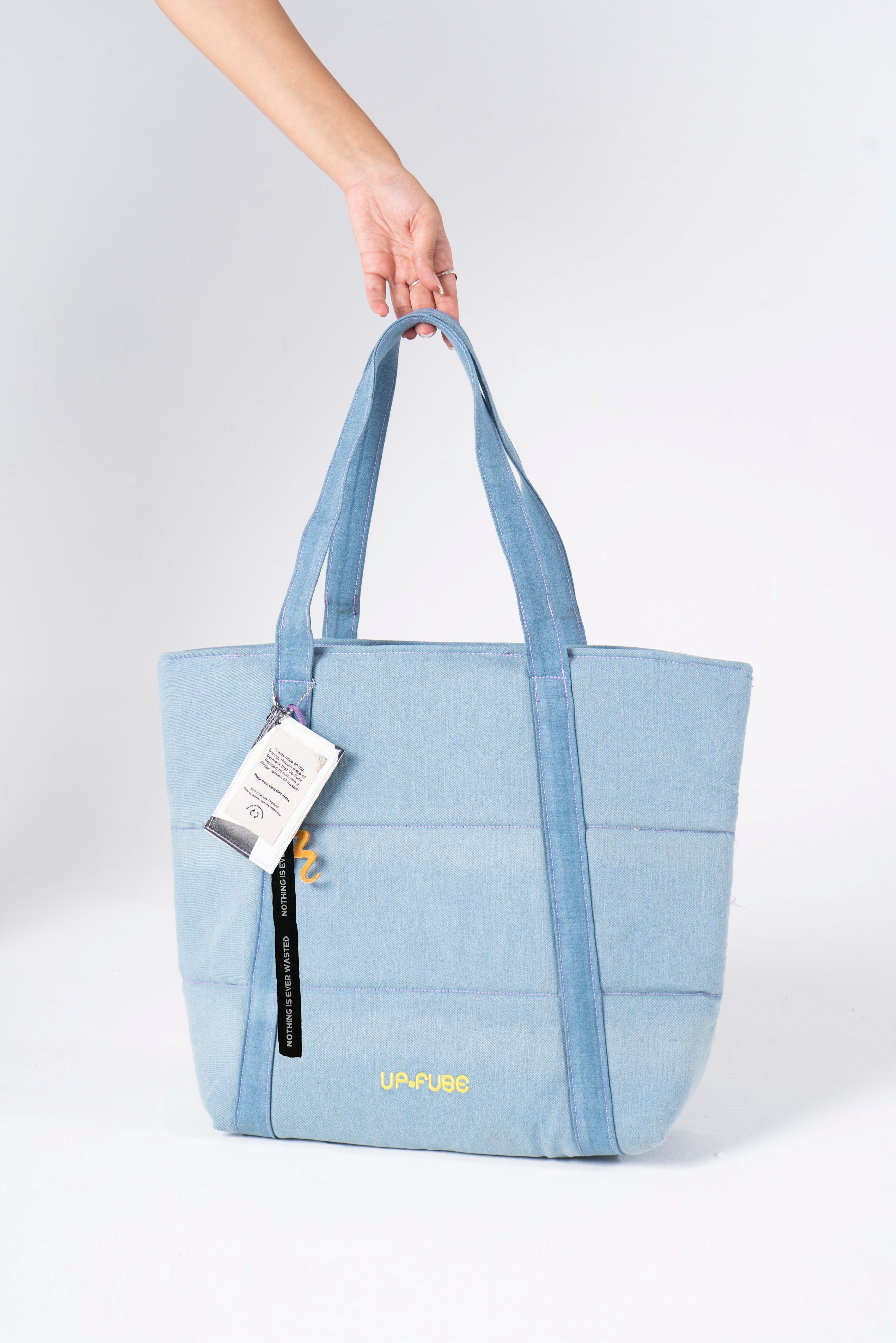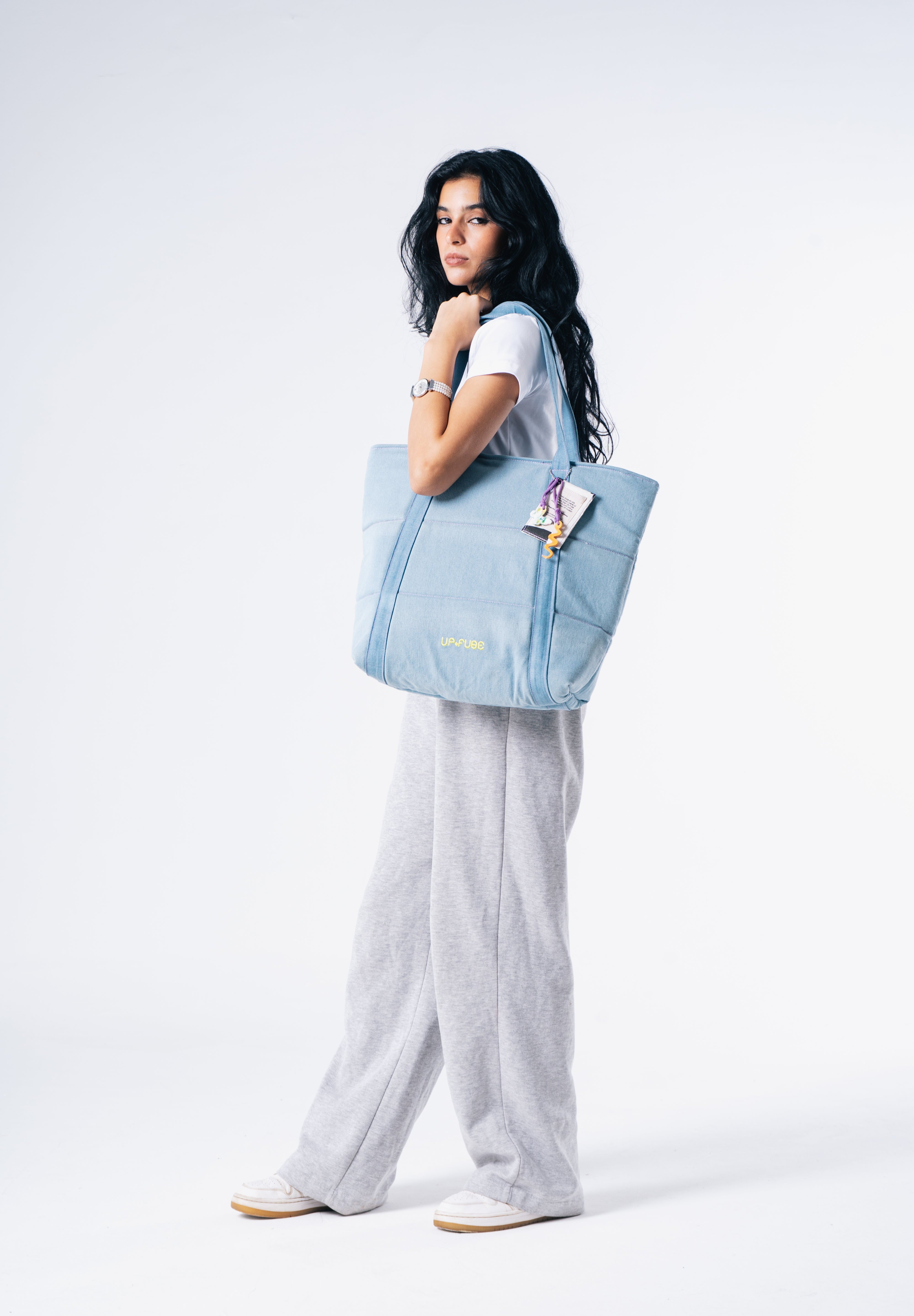 Introducing our Denim Affair Tote Bag, where timeless style meets everyday practicality. Made from repurposed denim, these tote bags offer a durable and eco-friendly way to carry your essentials. Available in three versatile colors—Blue, Ice Blue, and Black Denim—each bag combines classic denim charm with modern functionality. The spacious main compartment provides ample room for your daily items, while the sturdy handles ensure comfortable carrying. It also has a compartment for laptop fits up to 15' in size. With its sleek design and padded construction, this tote bag is perfect for work, shopping, or casual outings, making a stylish and sustainable statement wherever you go.