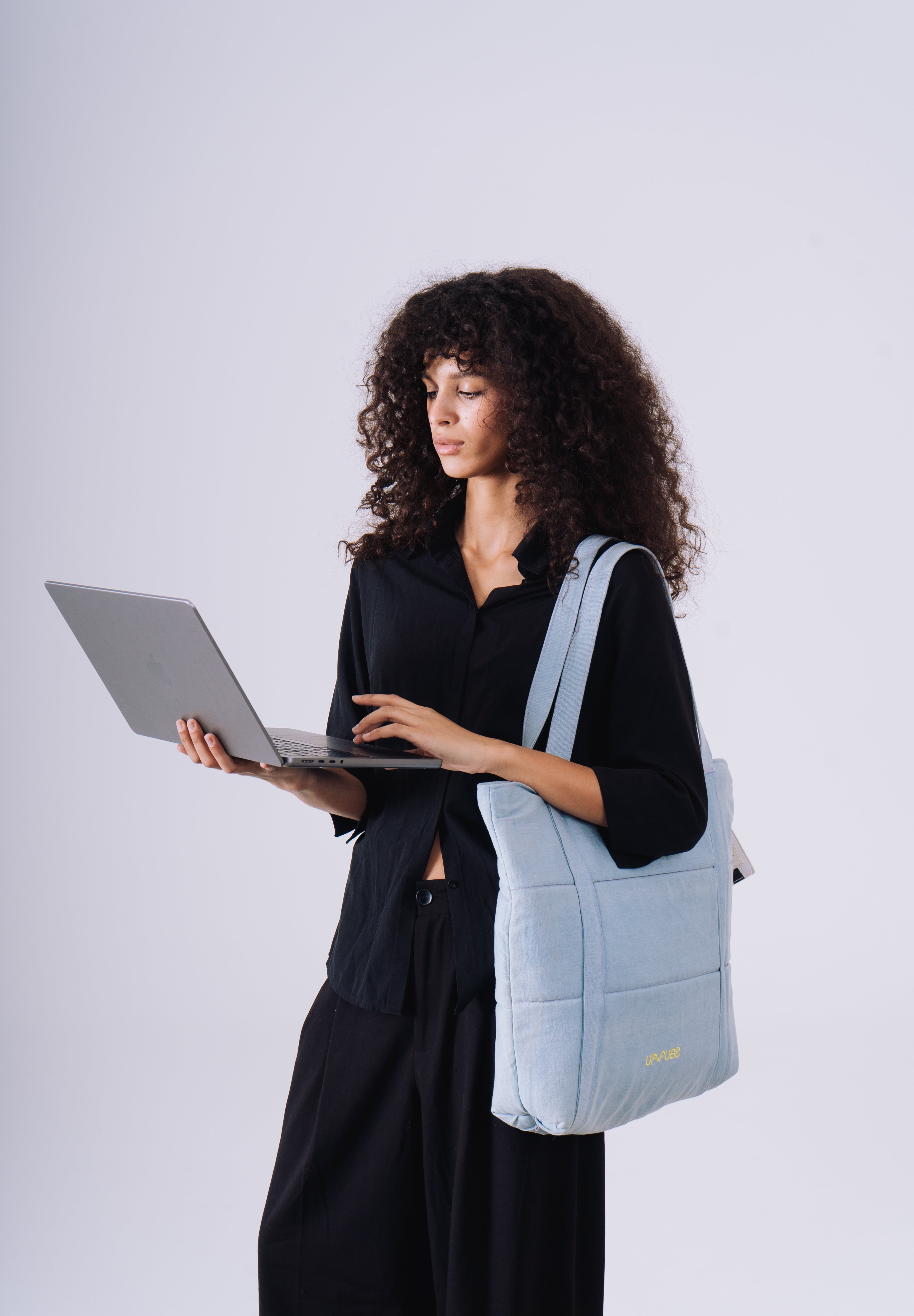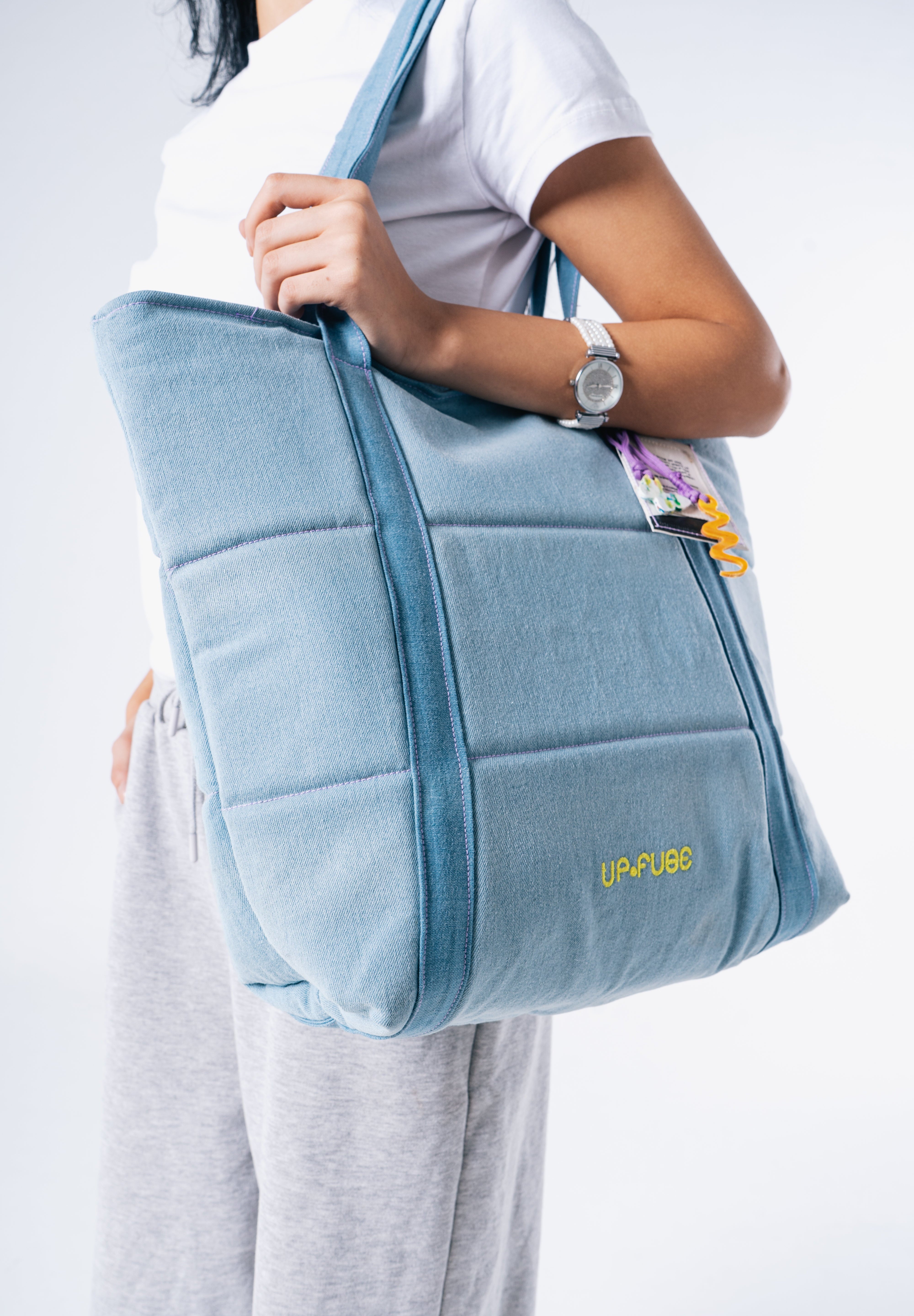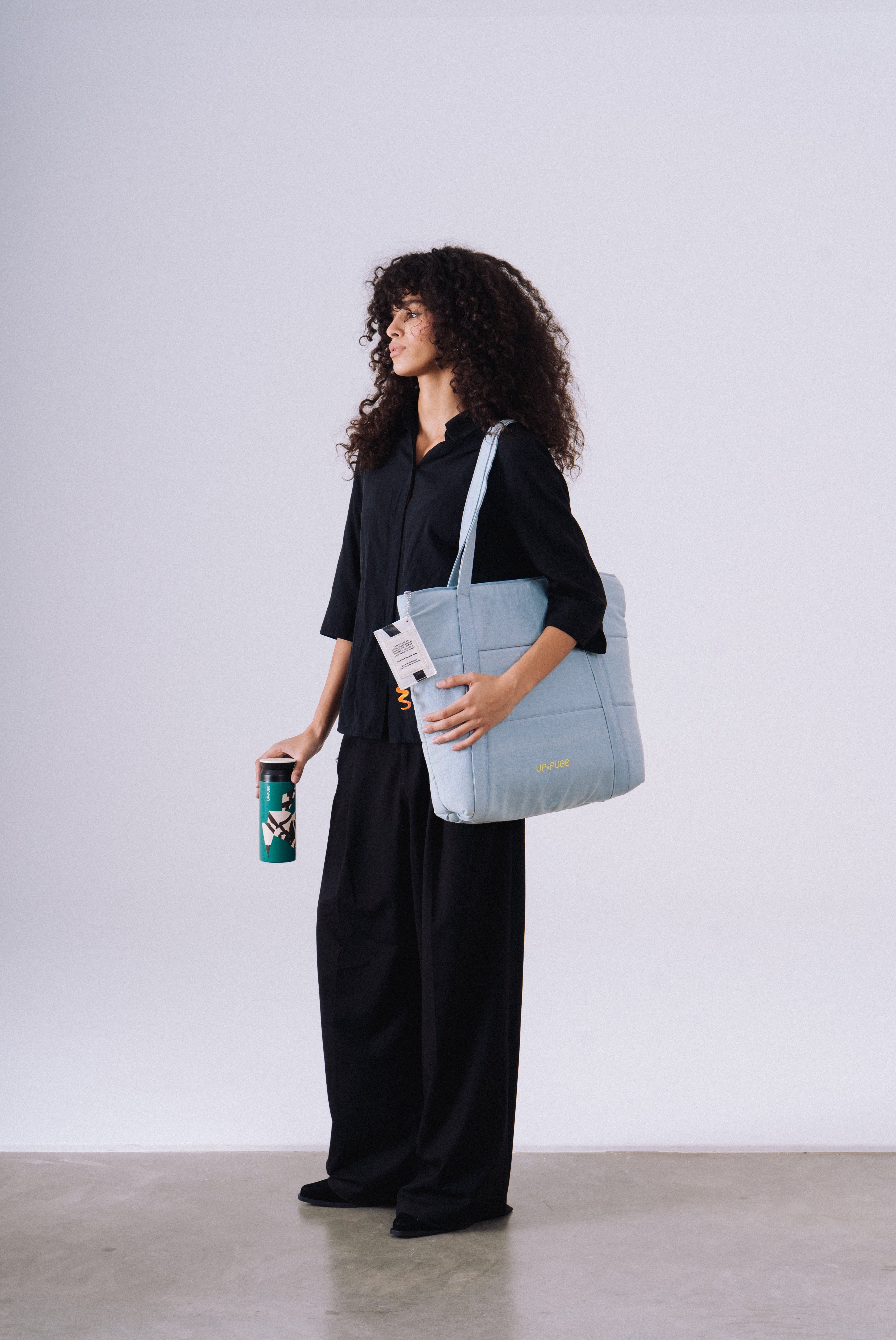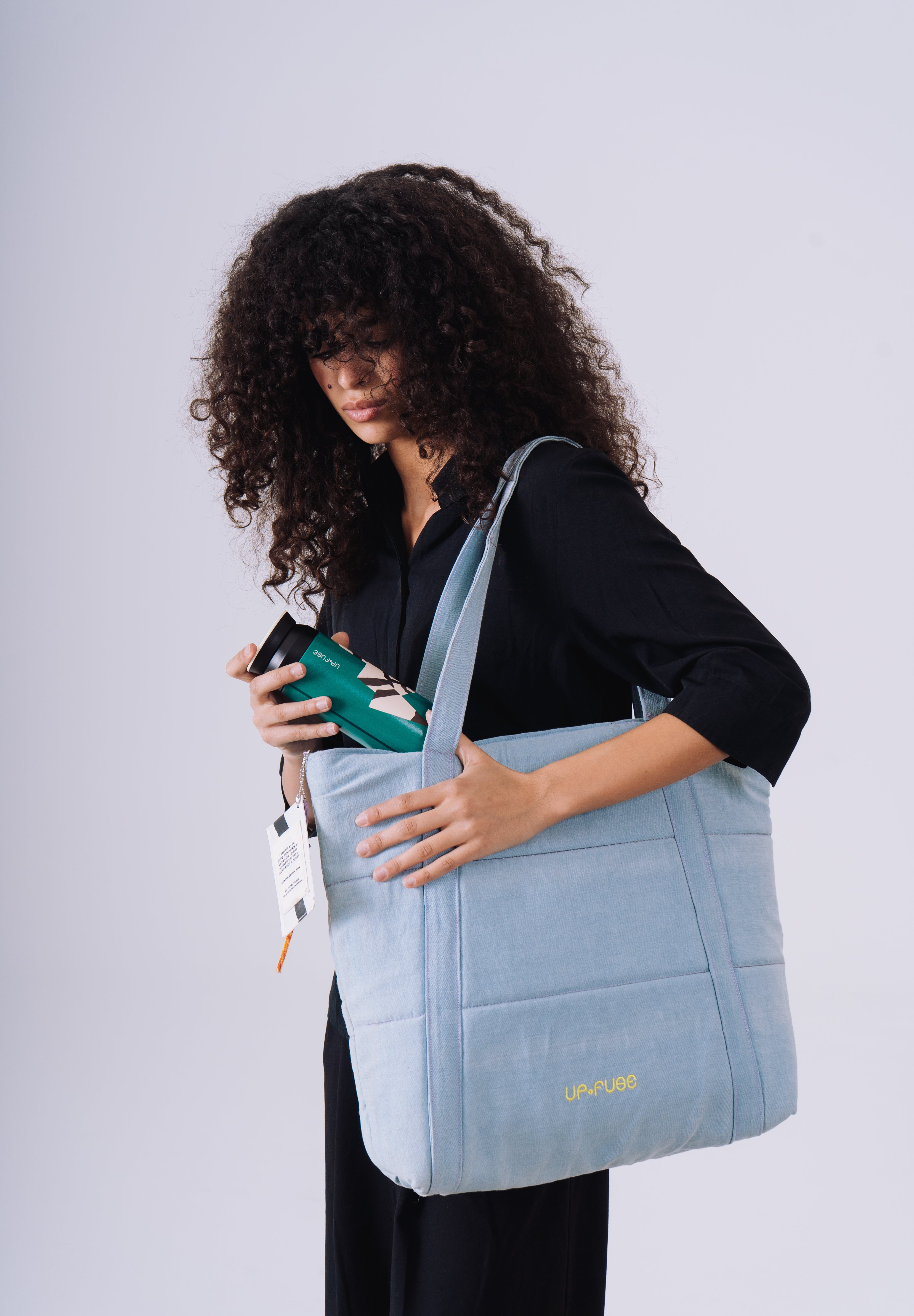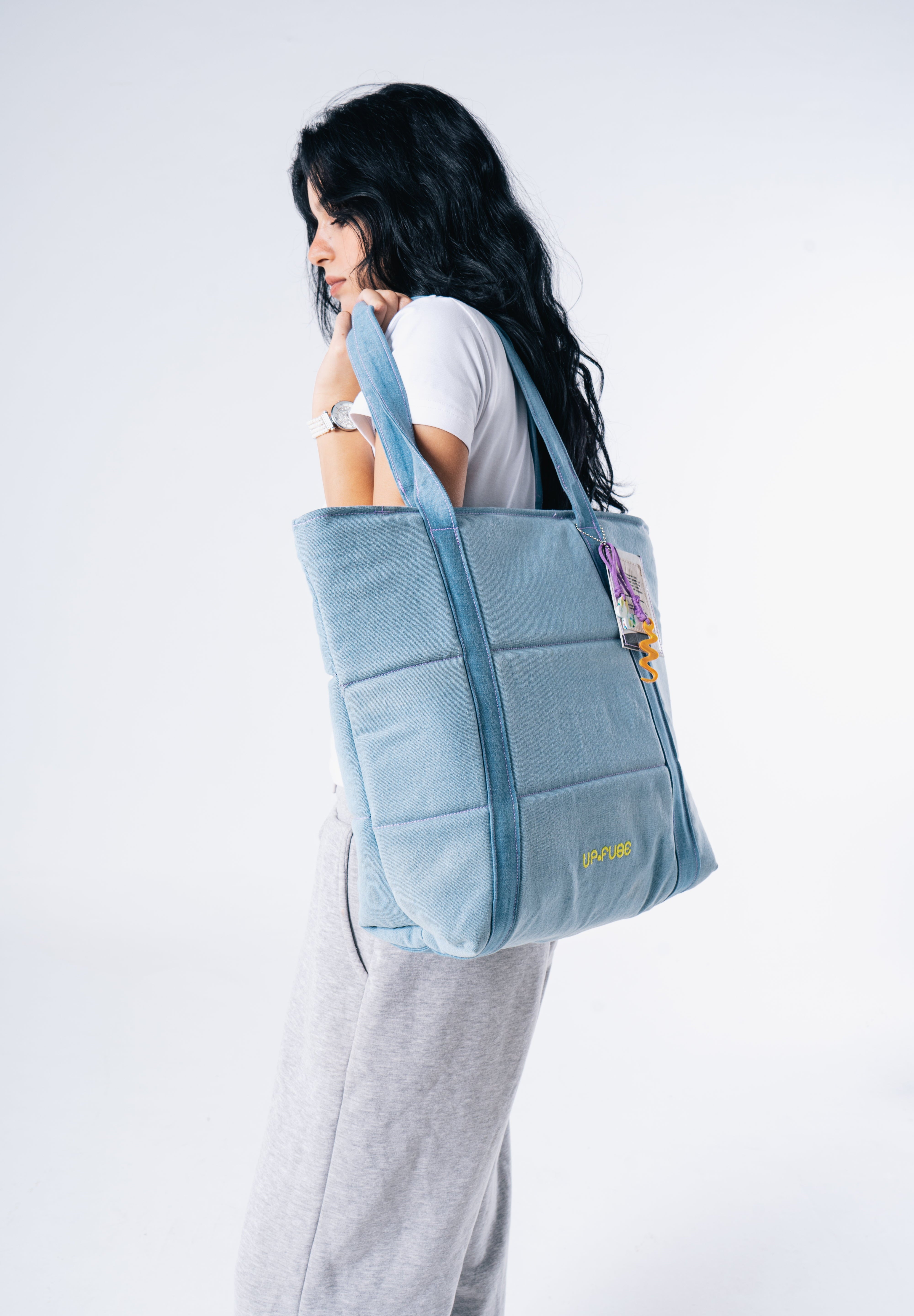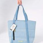 Introducing our Denim Affair Tote Bag, where timeless style meets everyday practicality. Made from repurposed denim, these tote bags offer a durable and eco-friendly way to carry your essentials. Available in three versatile colors—Blue, Ice Blue, and Black Denim—each bag combines classic denim charm with modern functionality. The spacious main compartment provides ample room for your daily items, while the sturdy handles ensure comfortable carrying. It also has a compartment for laptop fits up to 15' in size. With its sleek design and padded construction, this tote bag is perfect for work, shopping, or casual outings, making a stylish and sustainable statement wherever you go.