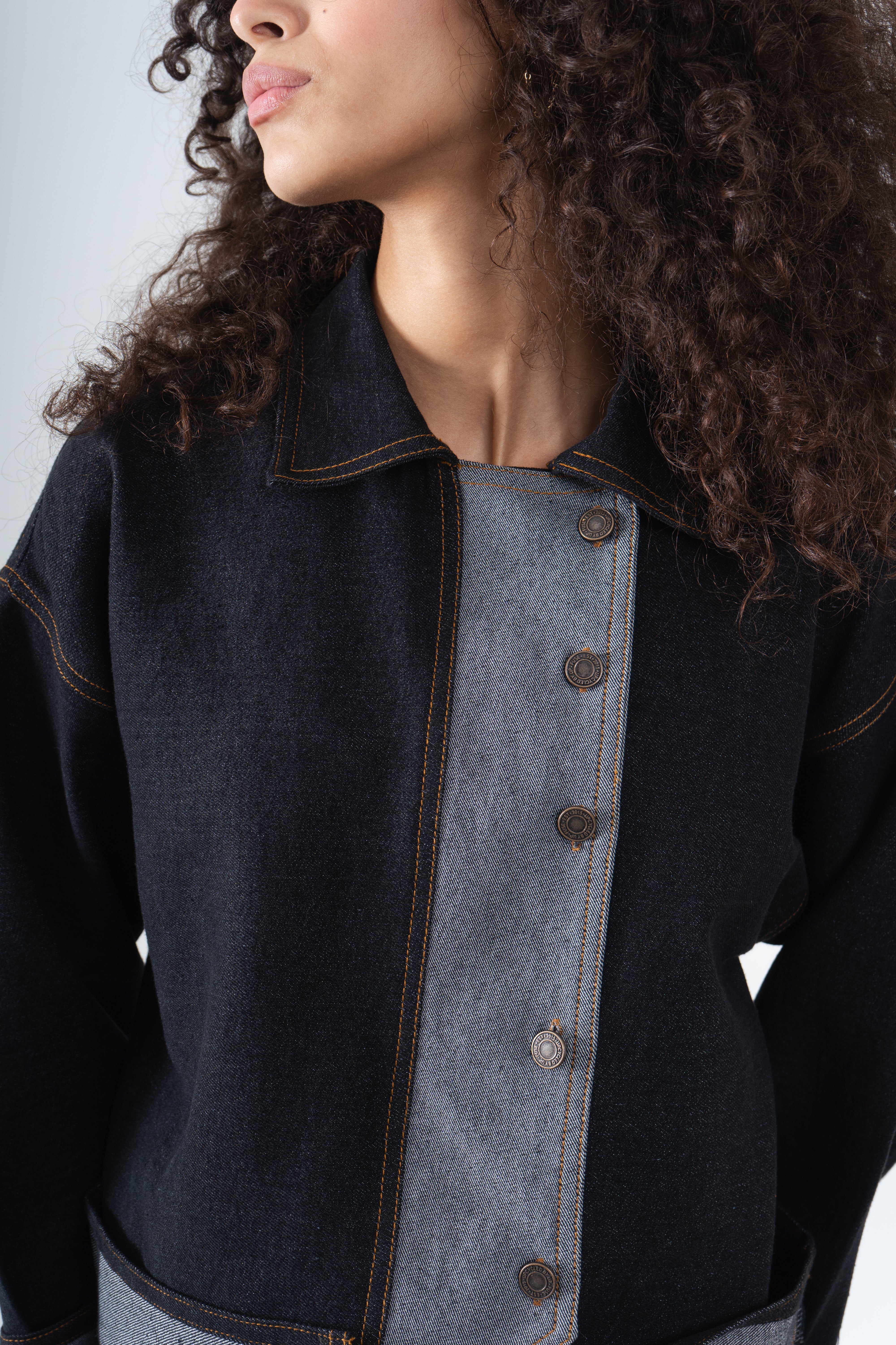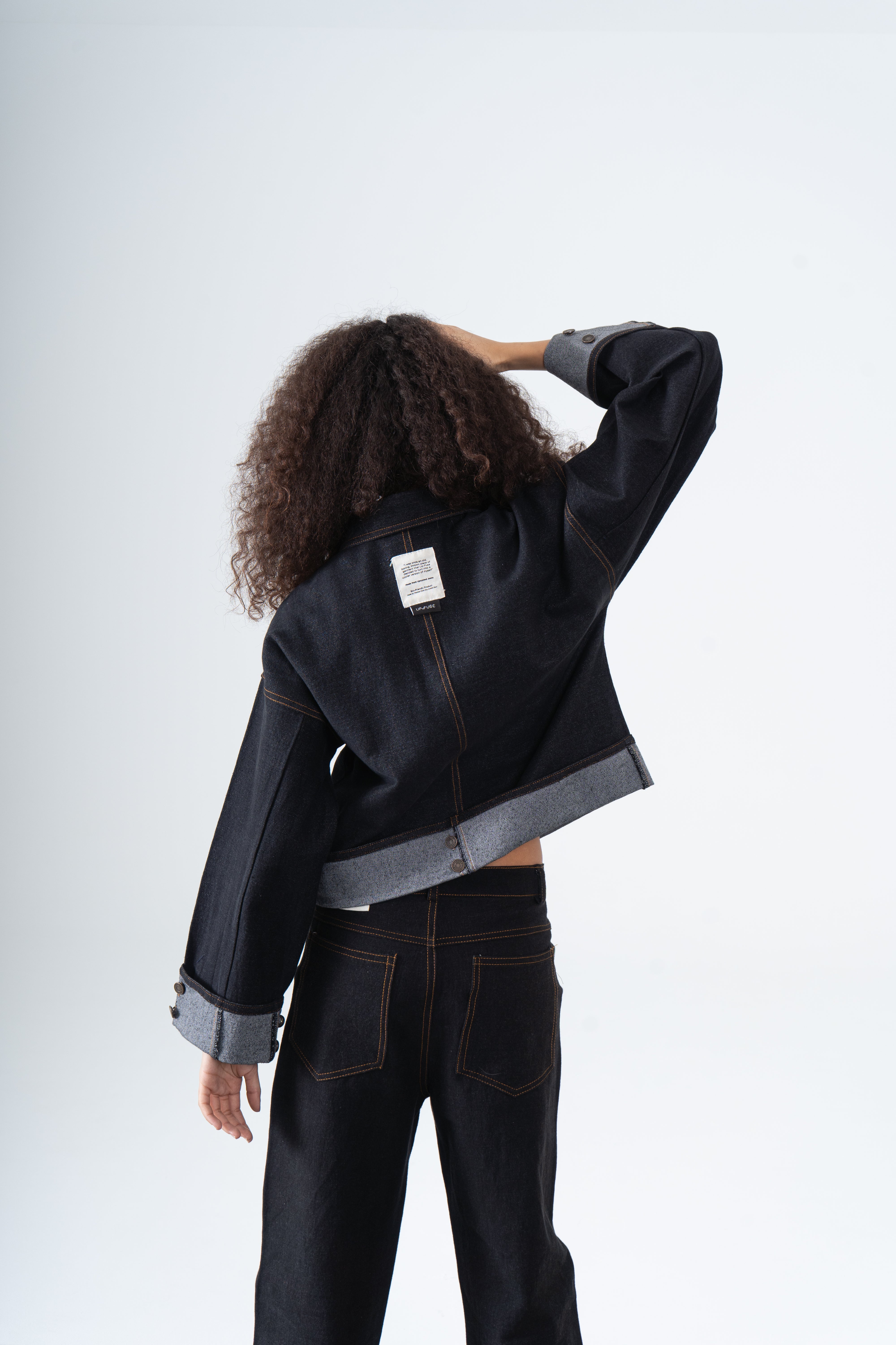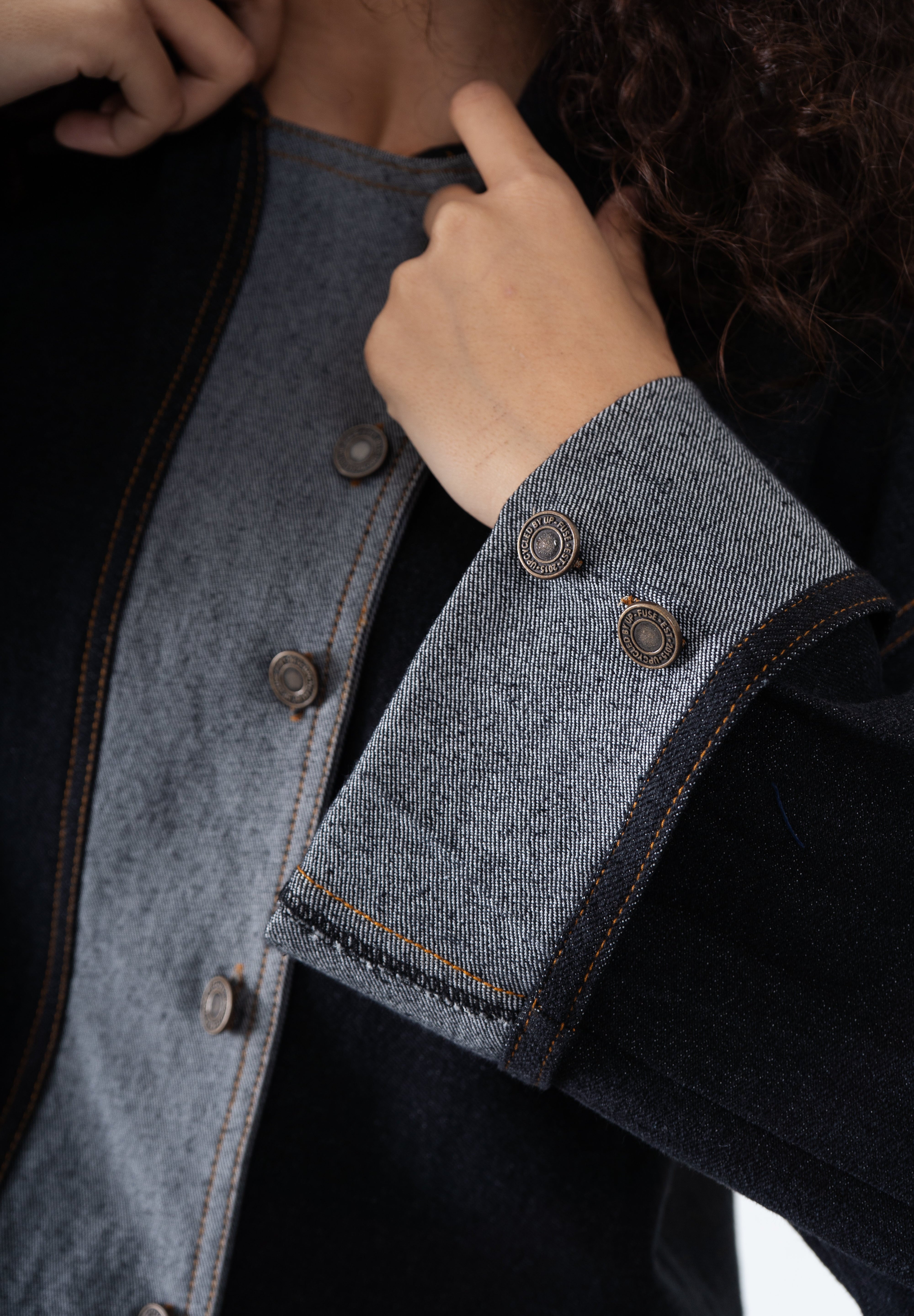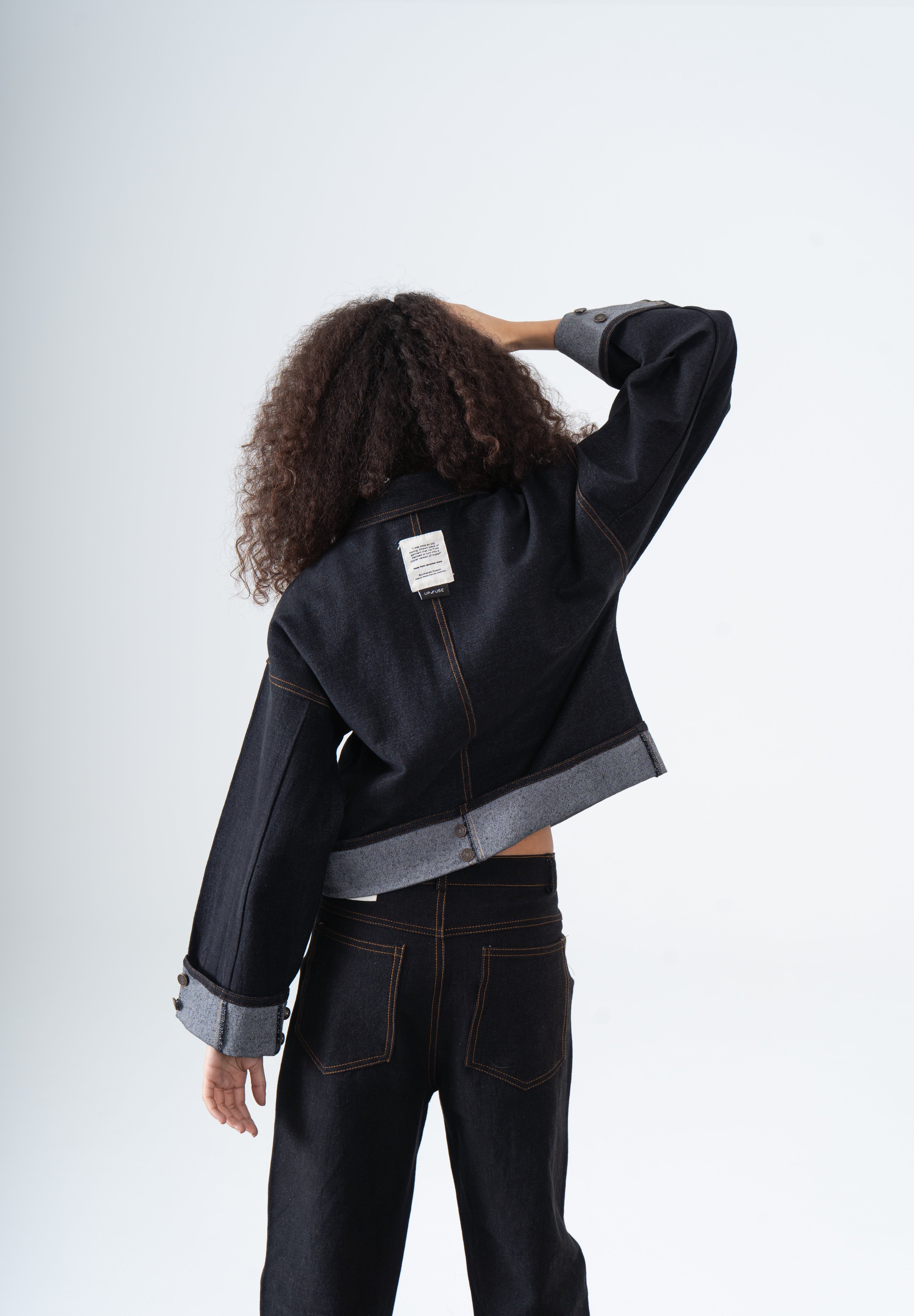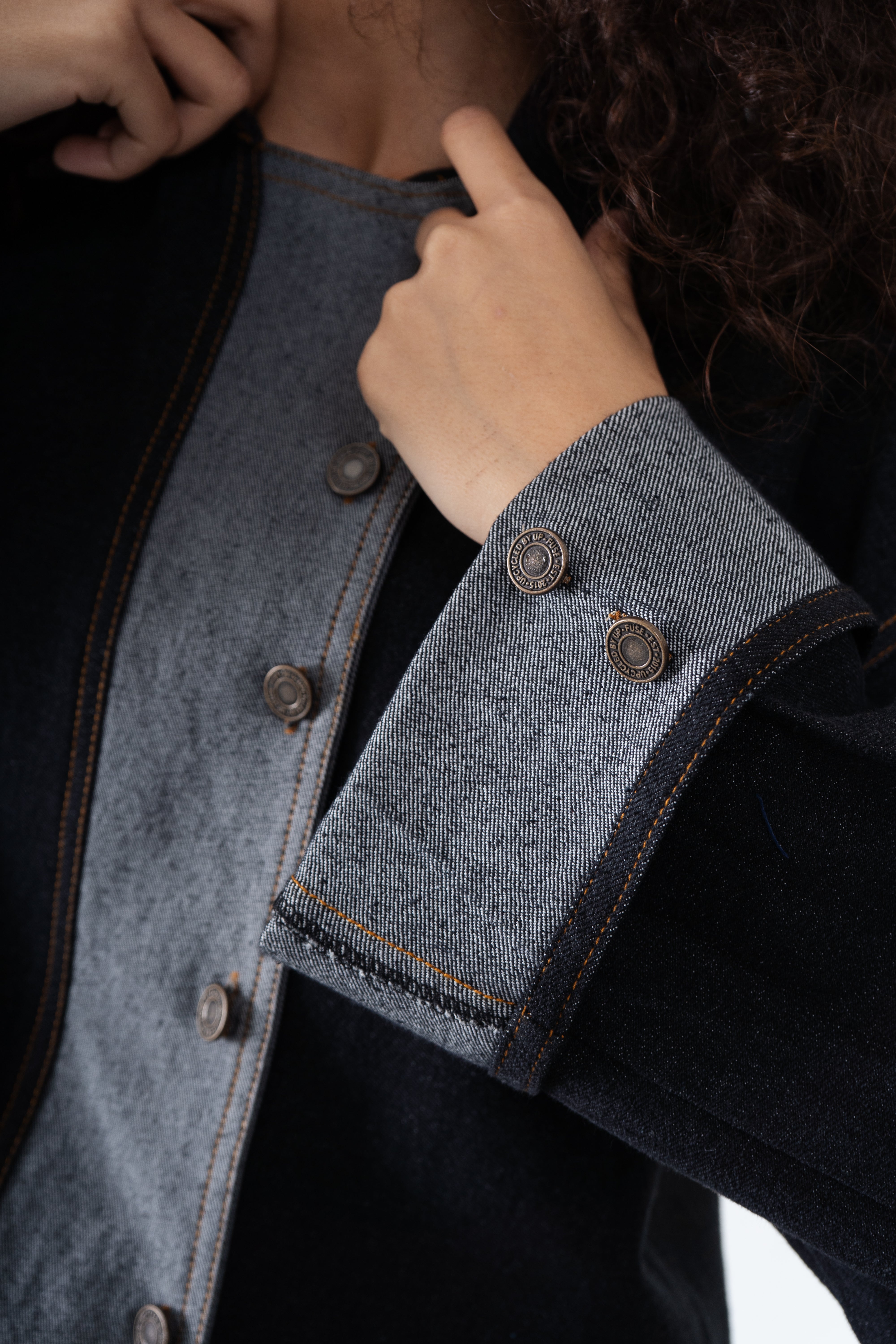 Exude effortless sophistication with the Drop Shoulder Denim Jacket, a masterful reimagining of a timeless classic. Crafted from upcycled denim, this jacket embodies sustainable luxury, featuring a relaxed, drop shoulder silhouette that lends an air of modern ease. The refined structure, coupled with meticulous craftsmanship, offers an elevated take on casual style. With its versatile design and subtle detailing, this jacket effortlessly balances sophistication with laid-back charm. Whether draped over a tailored blouse or worn as the focal point of a minimalist ensemble, this piece exudes quiet confidence and timeless appeal.