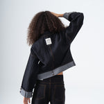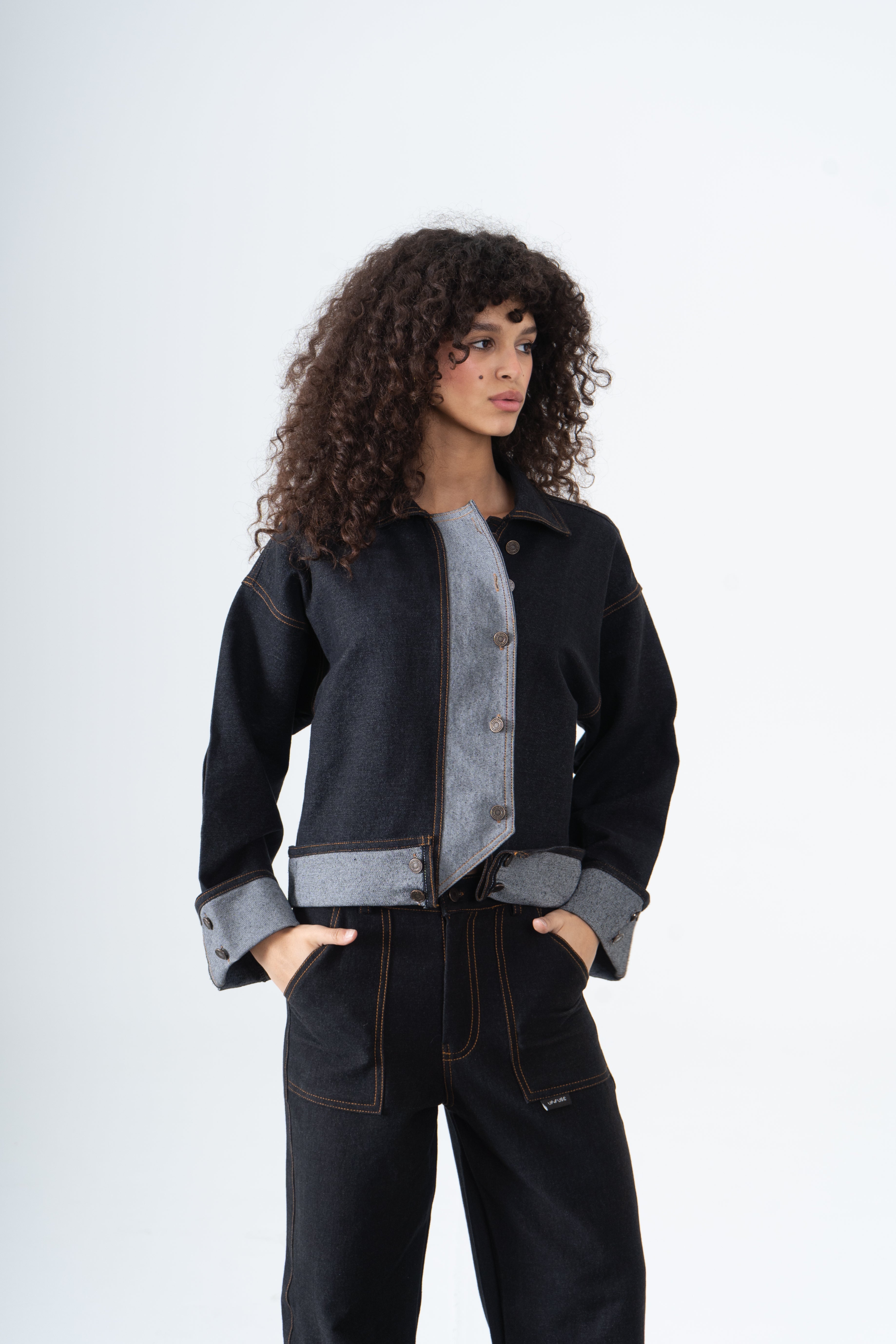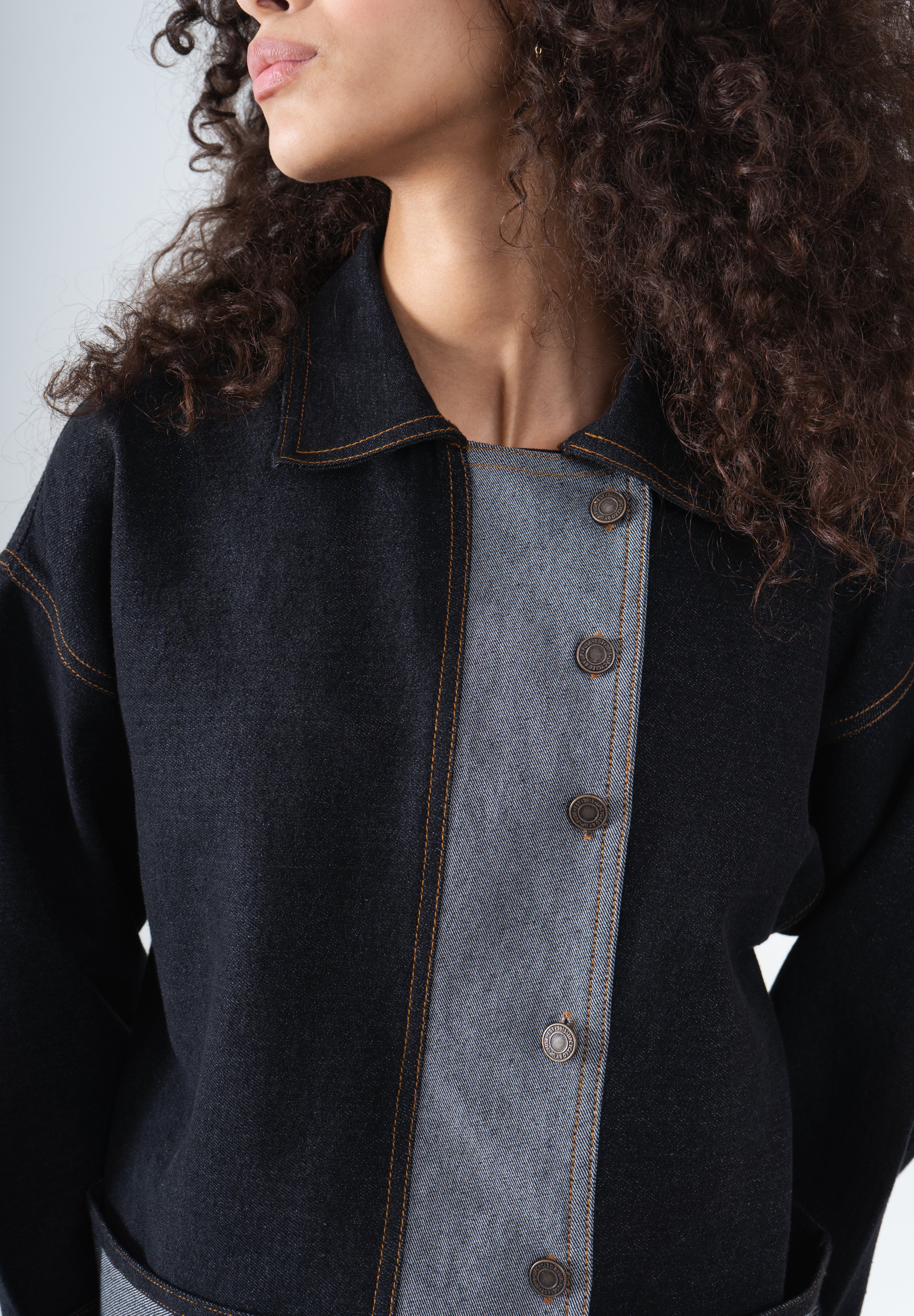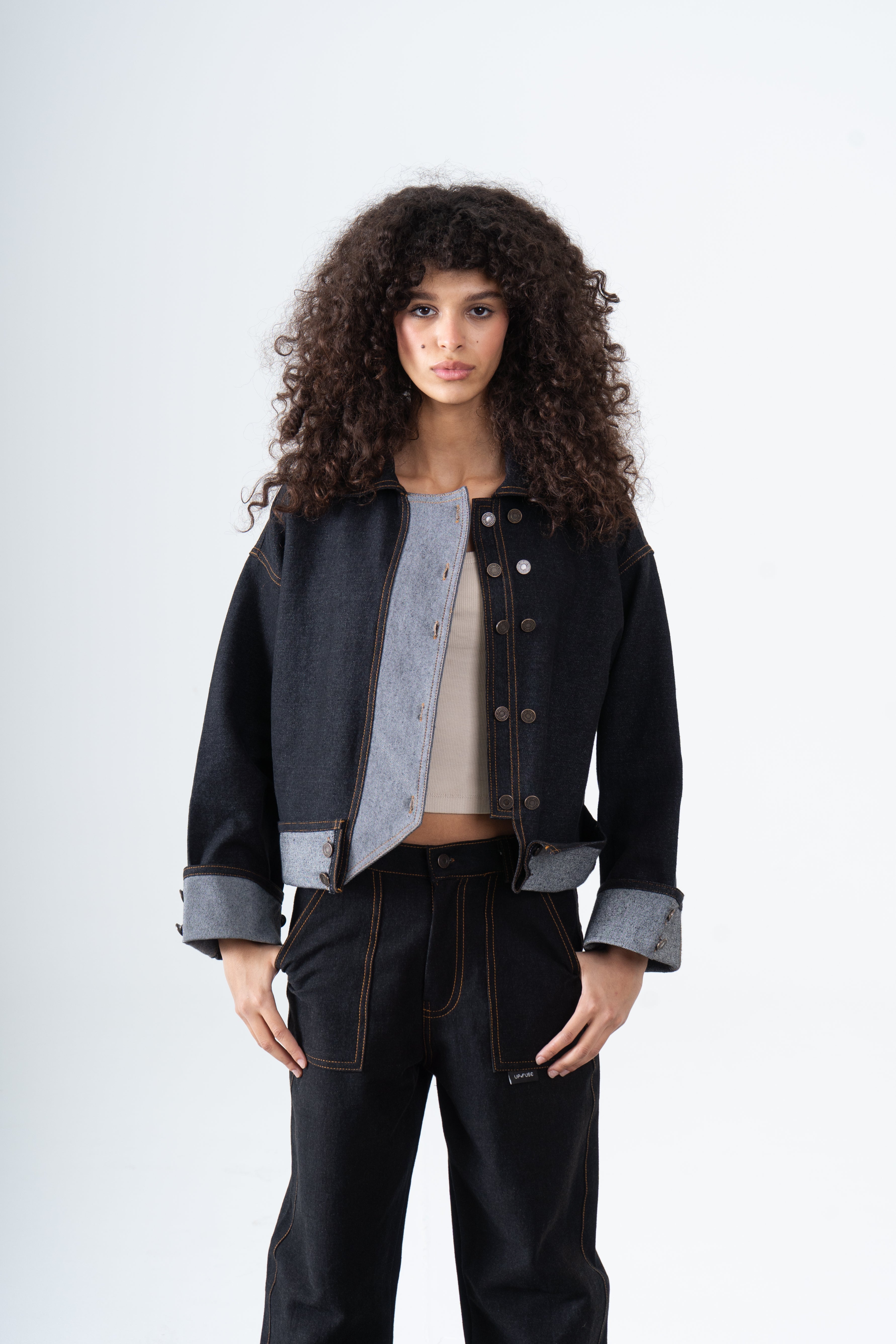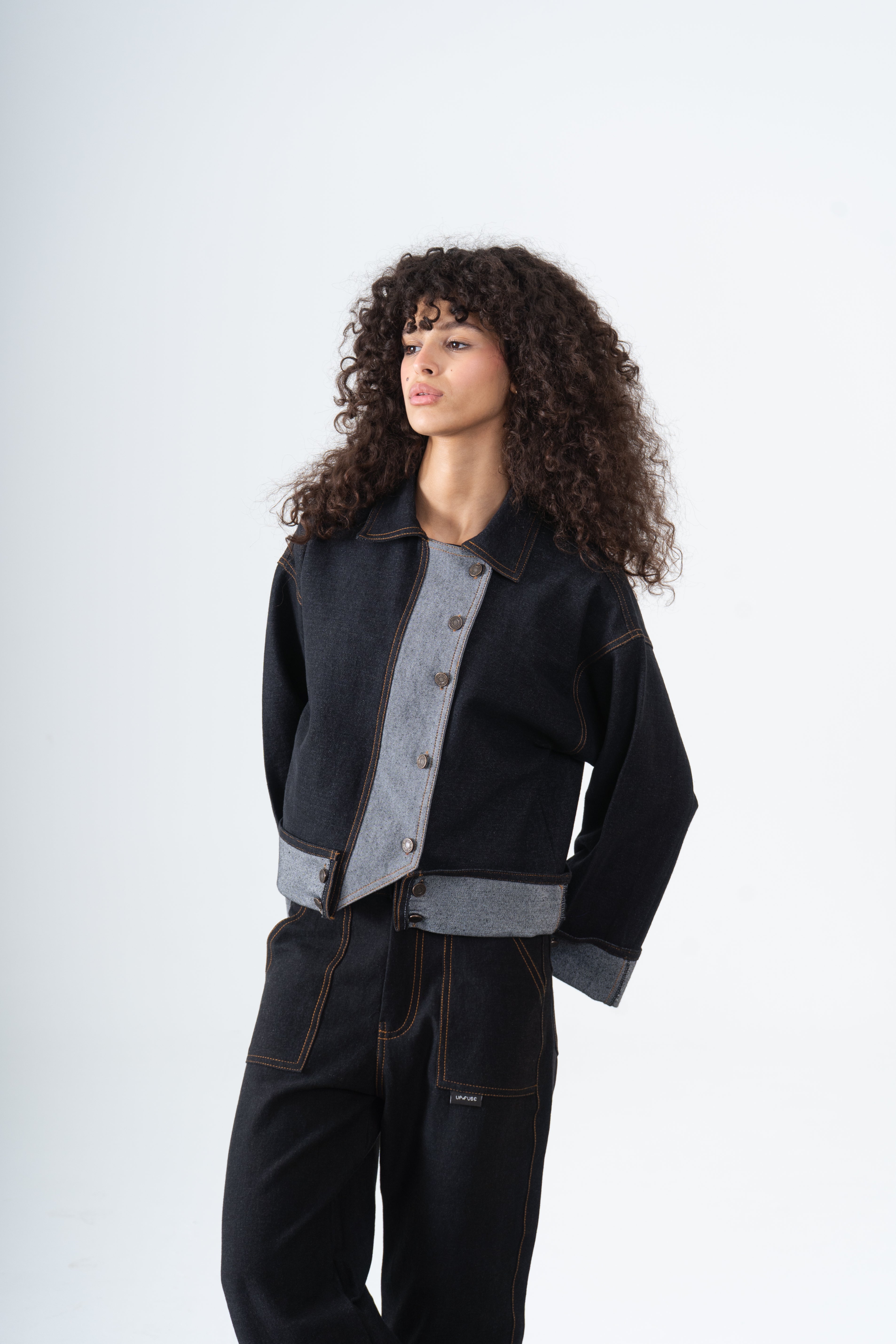 Exude effortless sophistication with the Drop Shoulder Denim Jacket, a masterful reimagining of a timeless classic. Crafted from upcycled denim, this jacket embodies sustainable luxury, featuring a relaxed, drop shoulder silhouette that lends an air of modern ease. The refined structure, coupled with meticulous craftsmanship, offers an elevated take on casual style. With its versatile design and subtle detailing, this jacket effortlessly balances sophistication with laid-back charm. Whether draped over a tailored blouse or worn as the focal point of a minimalist ensemble, this piece exudes quiet confidence and timeless appeal.