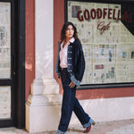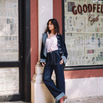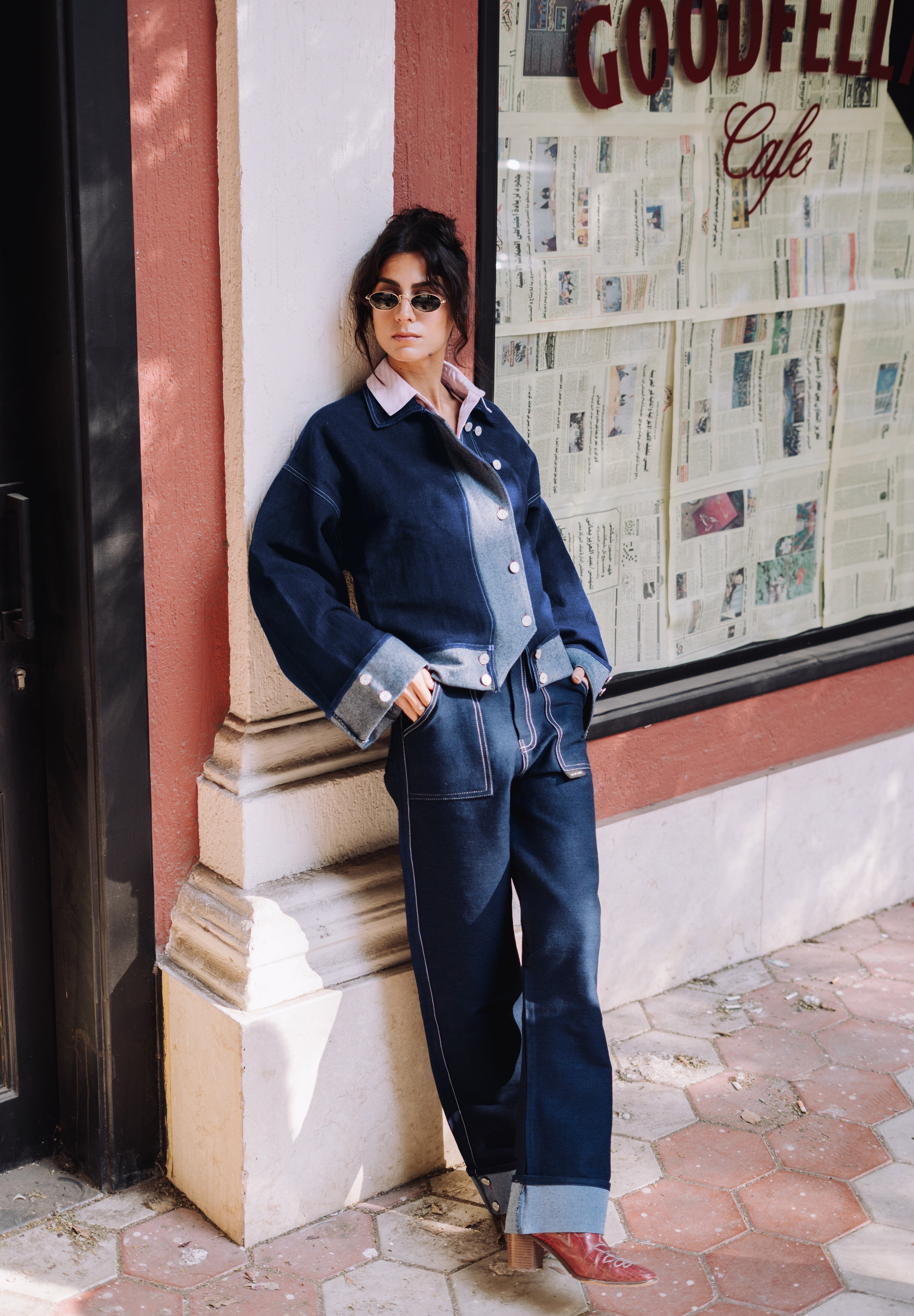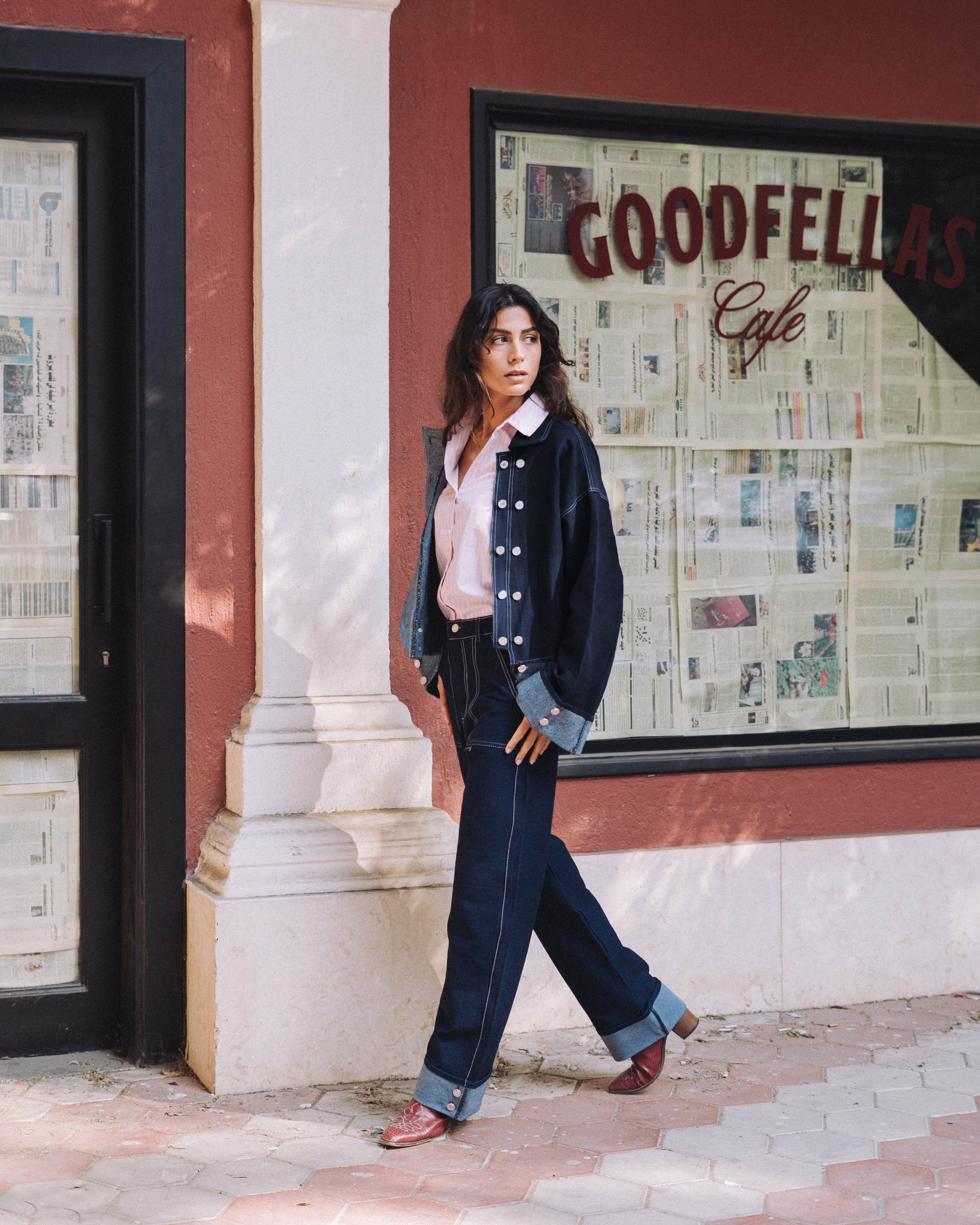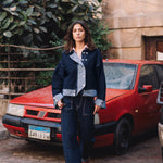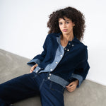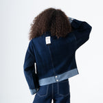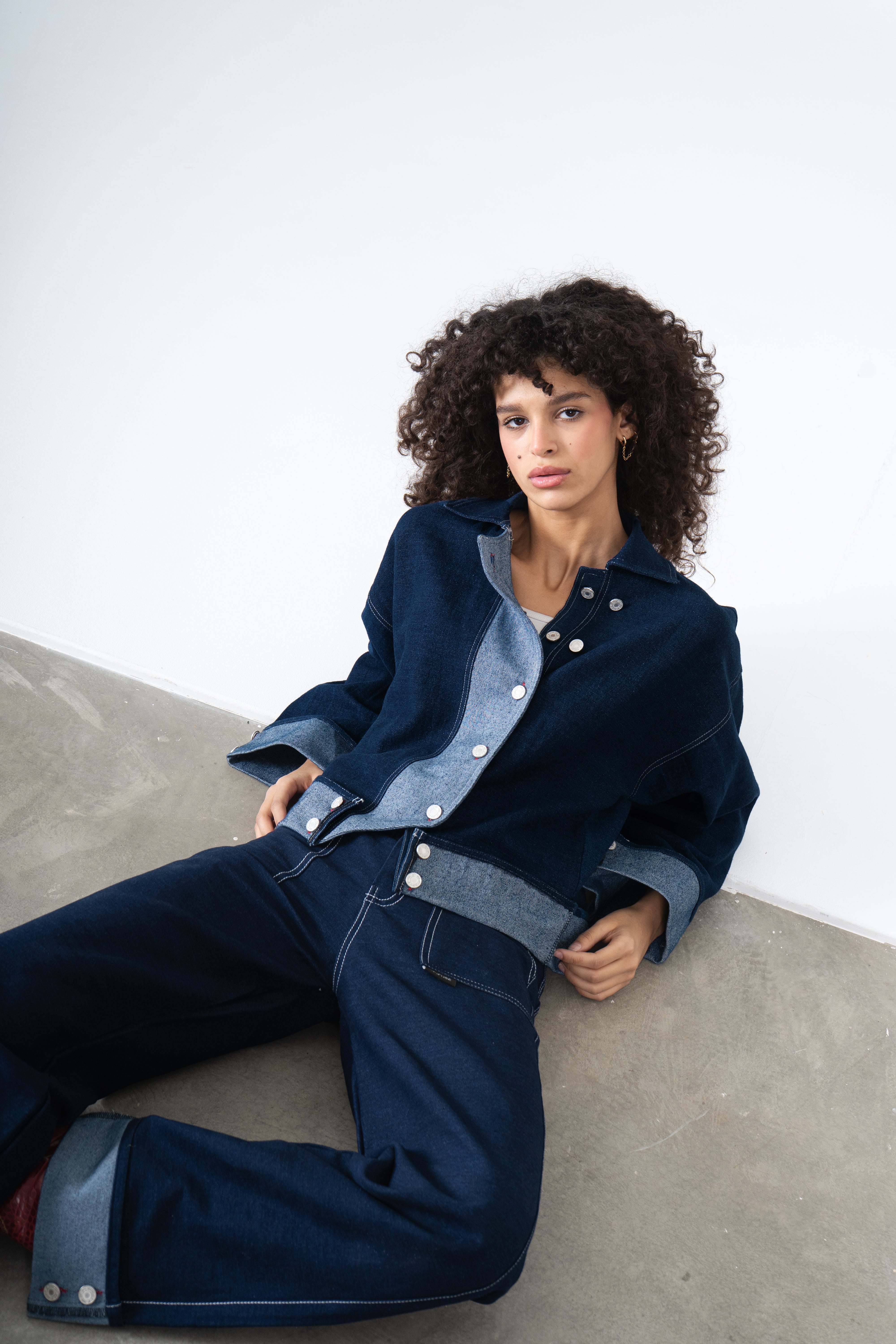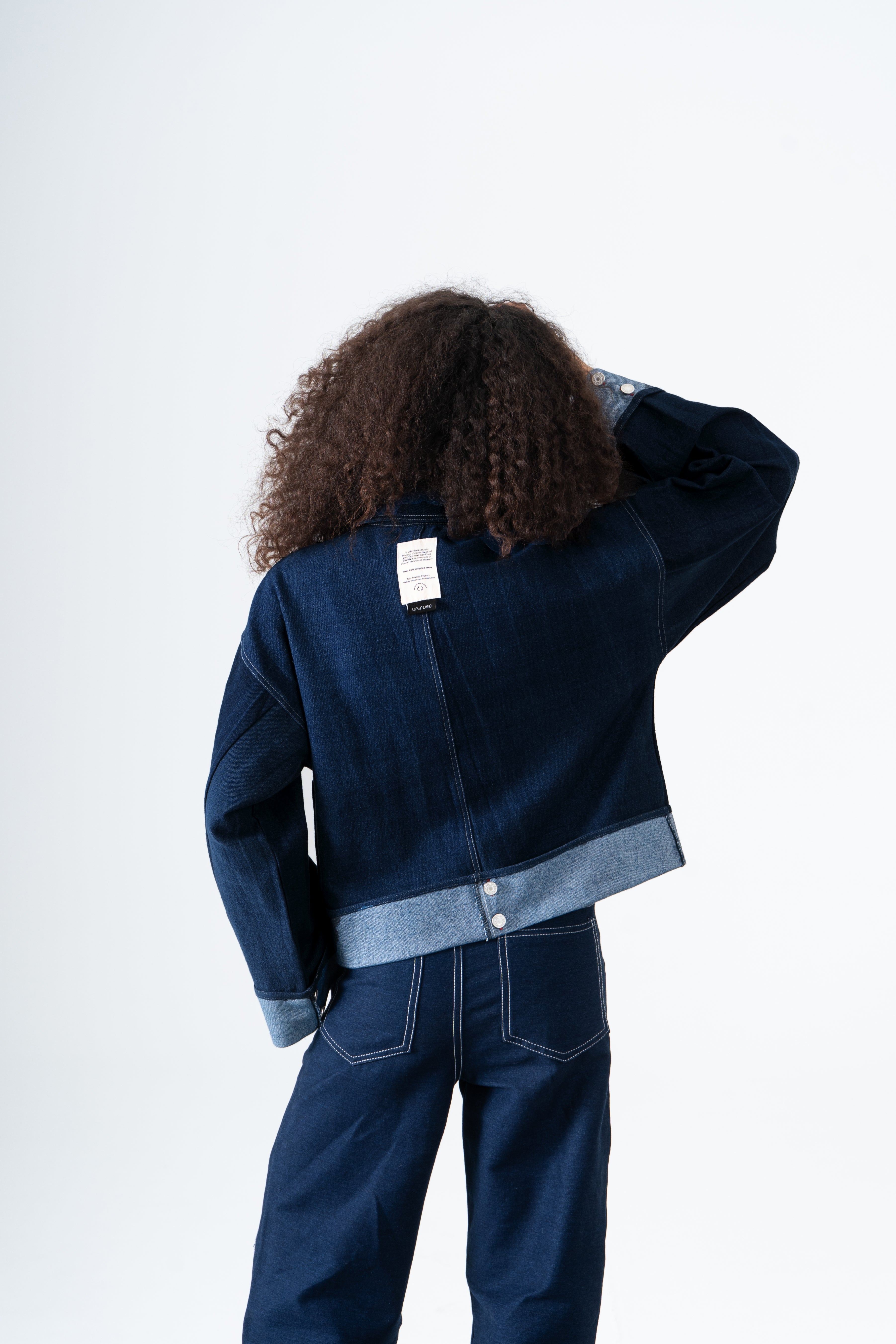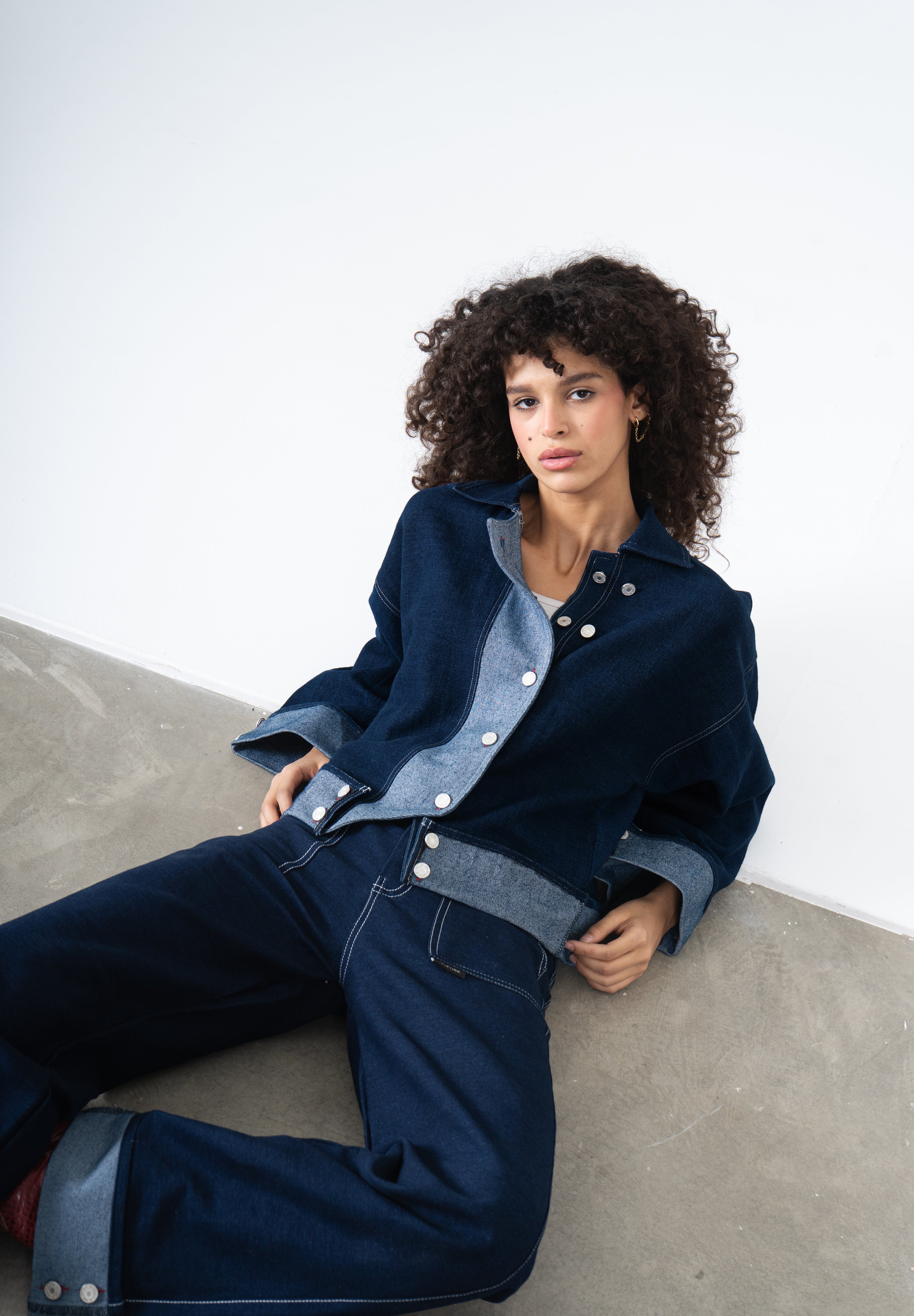 Exude effortless sophistication with the Drop Shoulder Denim Jacket, a masterful reimagining of a timeless classic. Crafted from upcycled denim, this jacket embodies sustainable luxury, featuring a relaxed, drop shoulder silhouette that lends an air of modern ease. The refined structure, coupled with meticulous craftsmanship, offers an elevated take on casual style. With its versatile design and subtle detailing, this jacket effortlessly balances sophistication with laid-back charm. Whether draped over a tailored blouse or worn as the focal point of a minimalist ensemble, this piece exudes quiet confidence and timeless appeal.