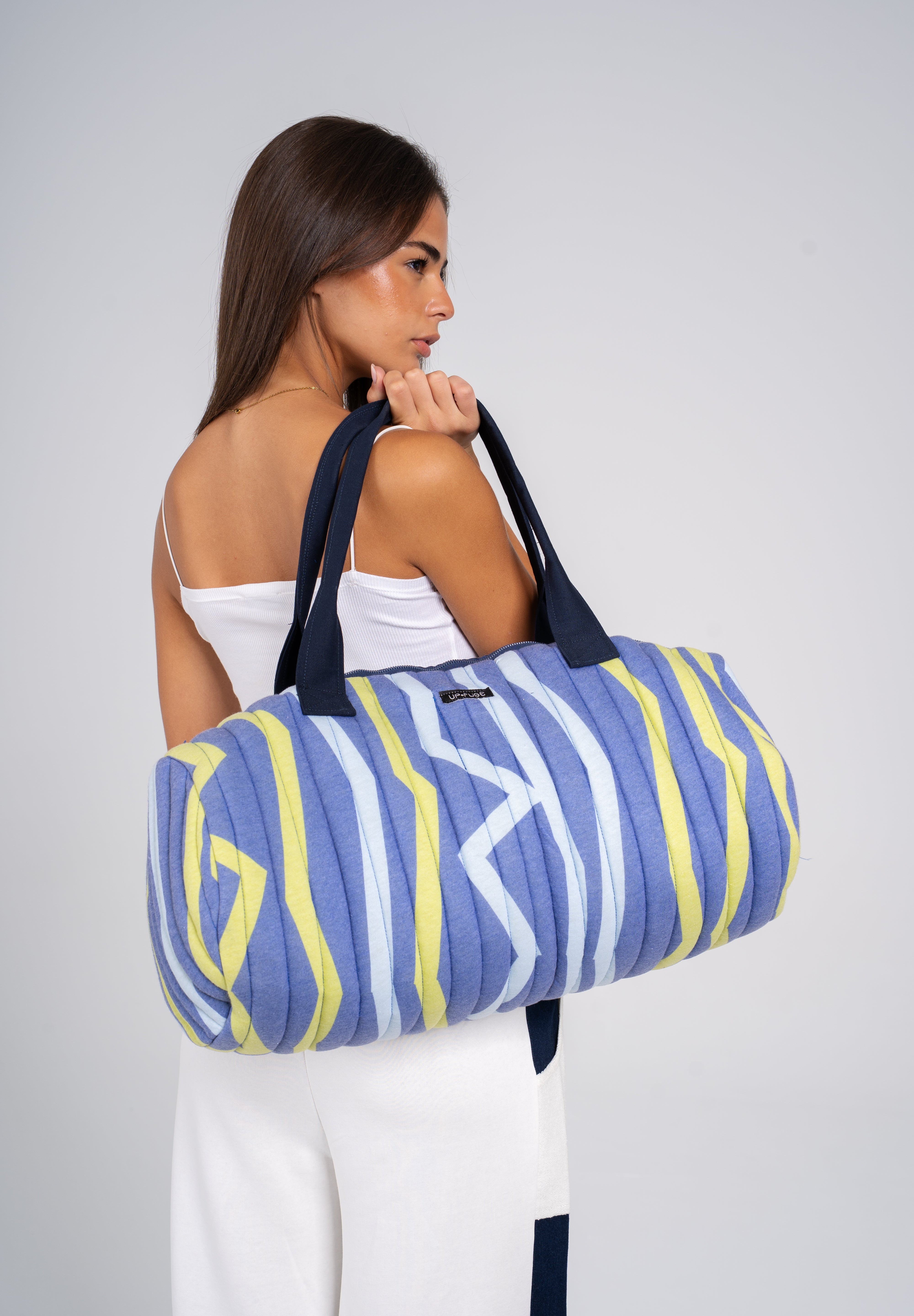 Crafted from quilted rPET, this eco-conscious duffle combines comfort and function in a sleek, puffy design. Spacious, lightweight, and versatile, it’s the ideal companion for everything from weekend getaways to everyday use.