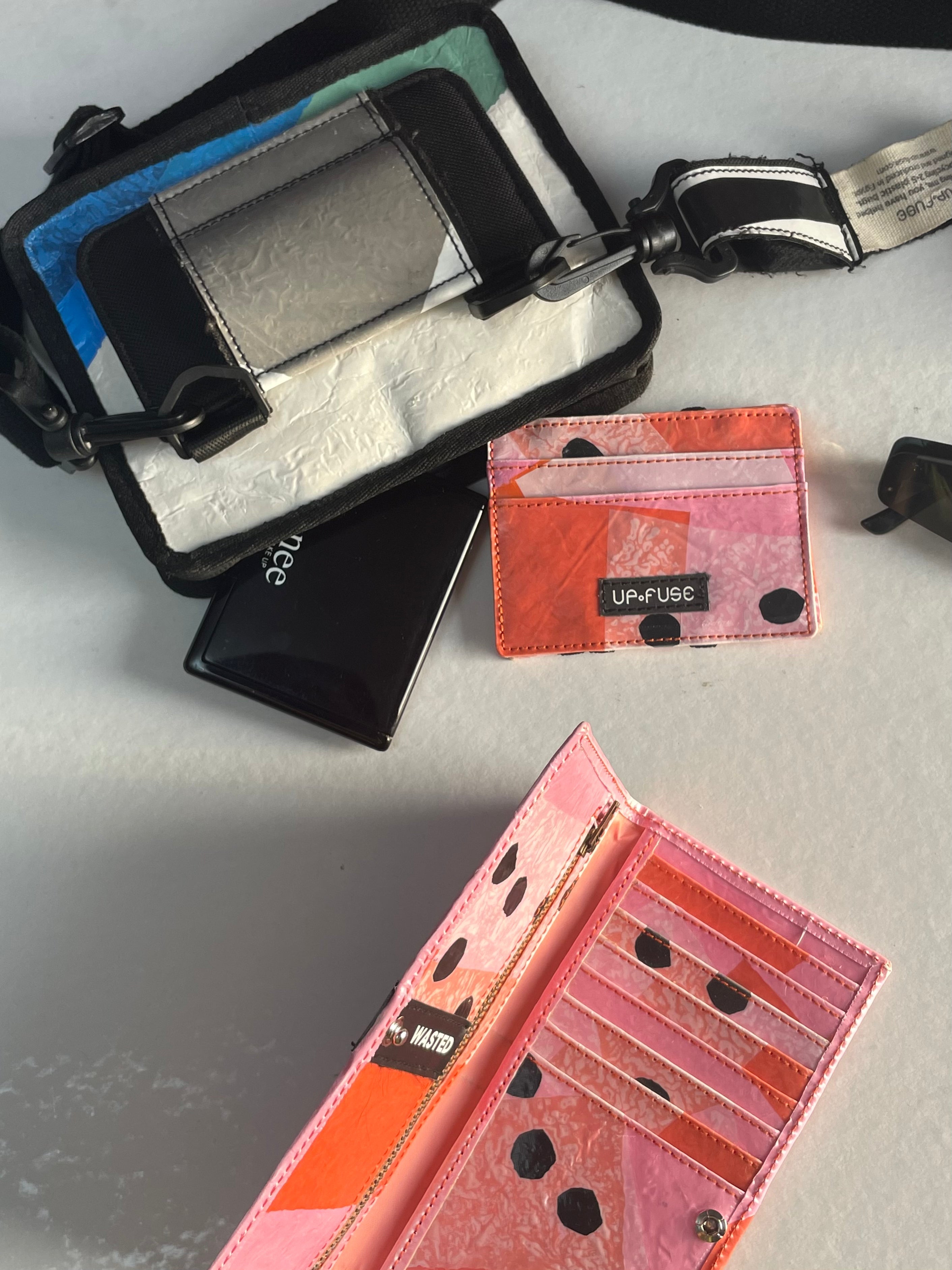 Because they're handmade, none of our pieces look 100% alike so please note that the one you receive may slightly differ from the picture. Each plastic sheet we use as part of our upcycling process is unique, making each of our pieces one of a kind just like their owners. Enjoy your individualized purchase!