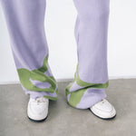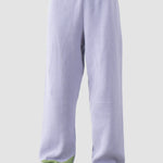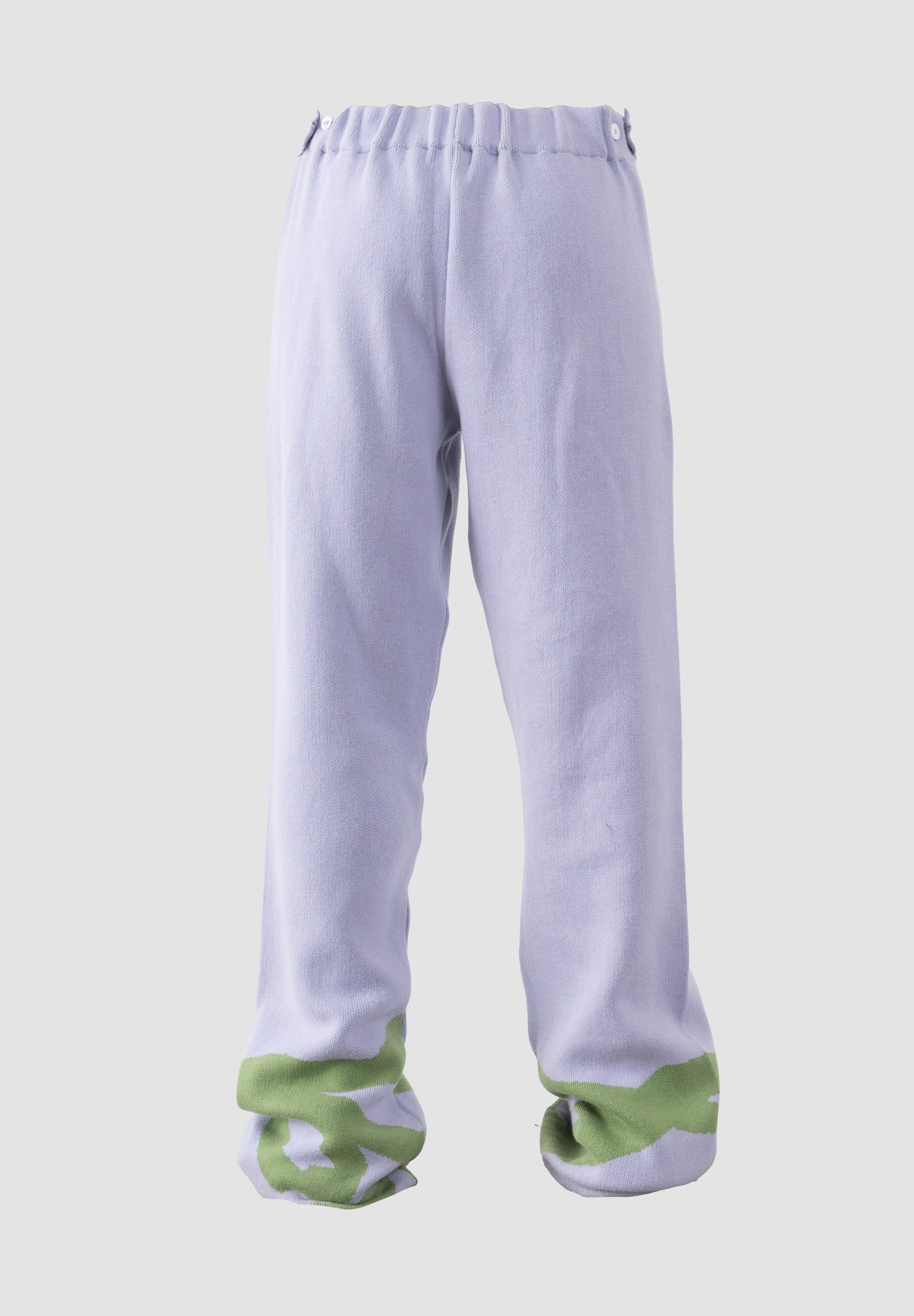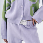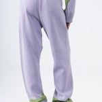 Matching Mid-Rise Pants: Designed for both coziness and chic appeal, the mid-rise pants offer a flattering fit while maintaining comfort. The wide-leg silhouette is accented with matching knit details at the cuffs. A subtle branding tag at the waistband adds an extra touch of individuality.