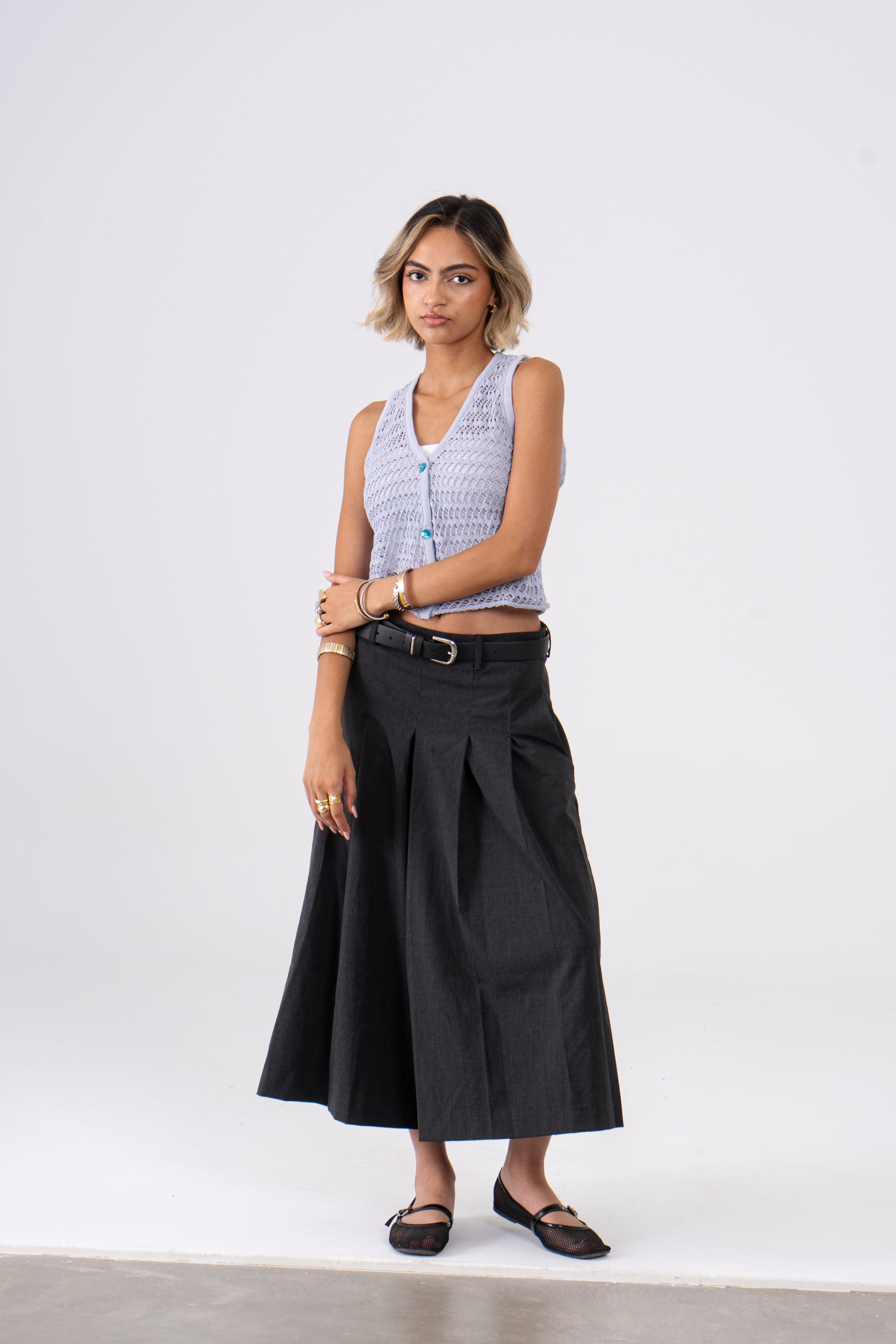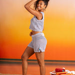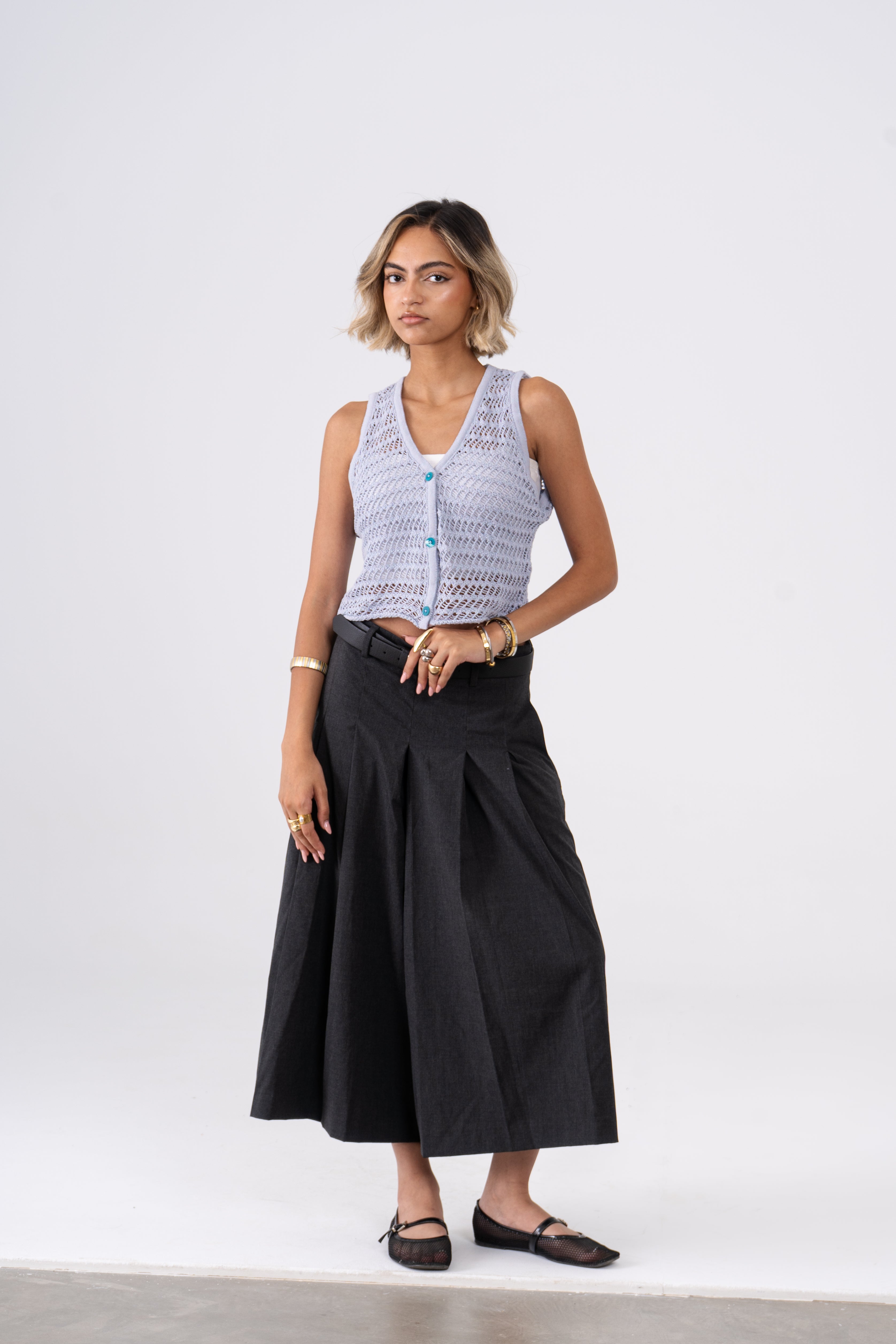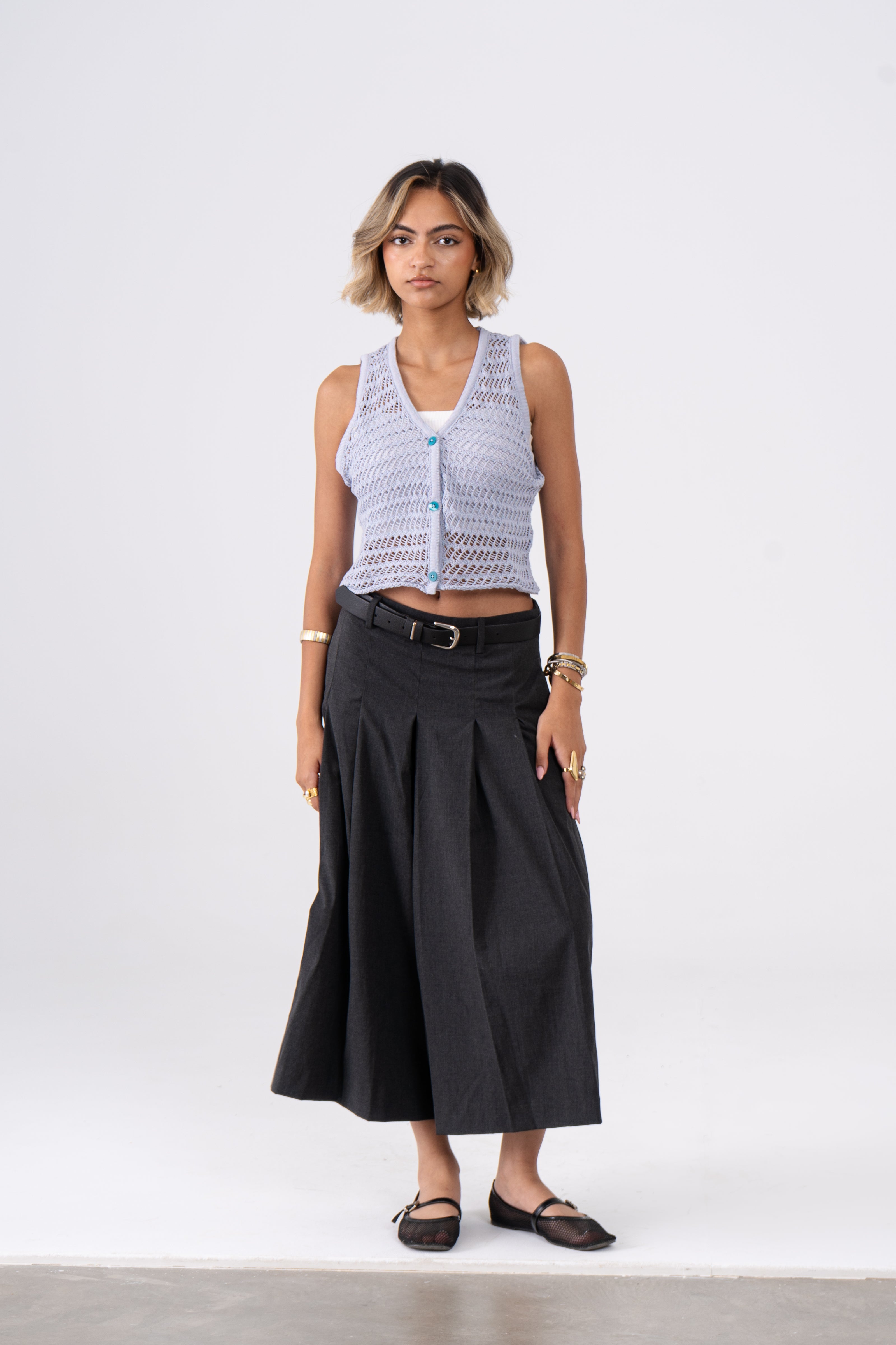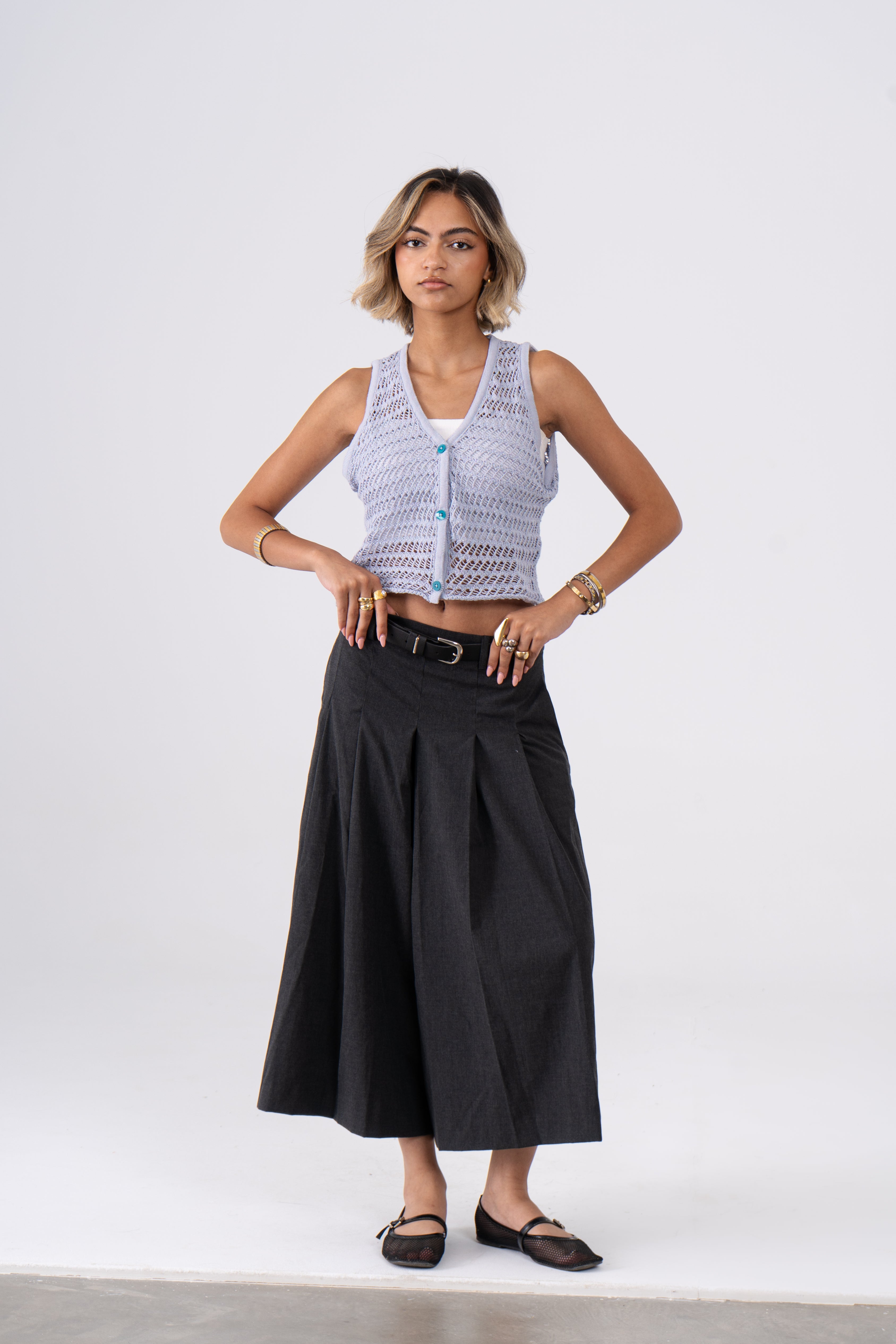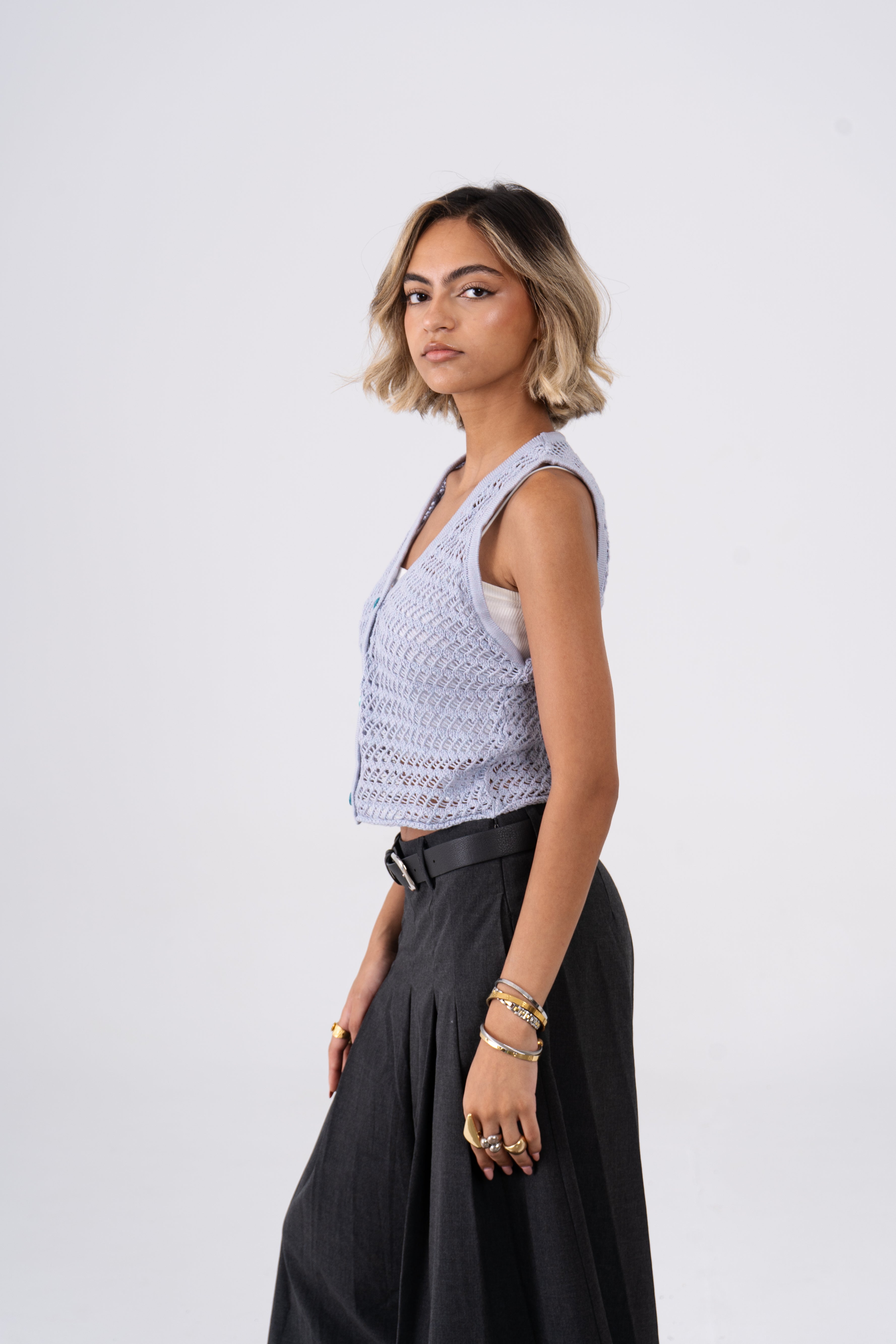 This open-knit two-piece set features a cropped, button-up vest and matching high-rise shorts. Easy to throw on, easy to feel good in. Whether you're staying in the shade or chasing sun, this one brings the breeze with you.