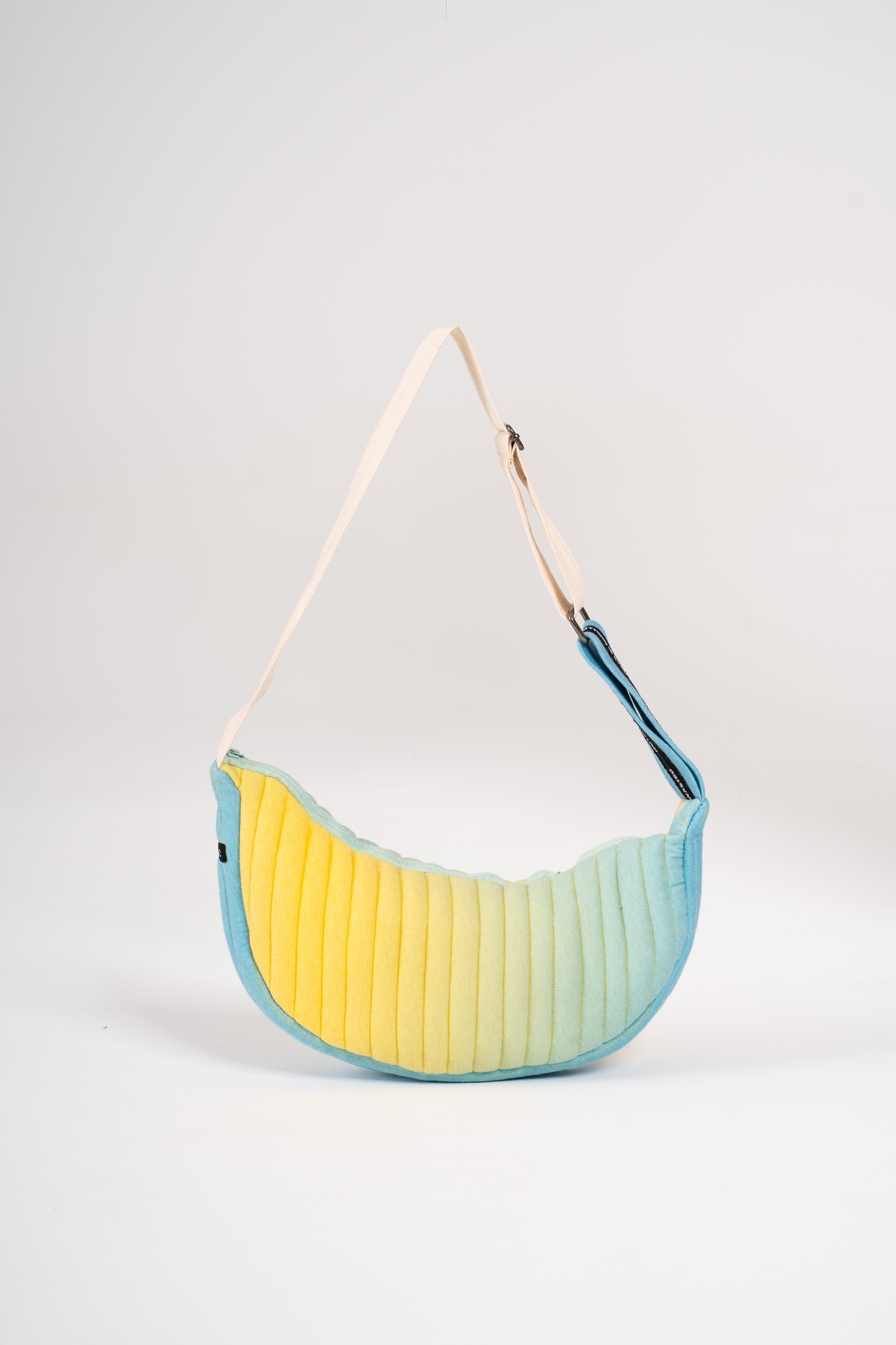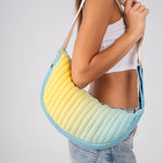 A little cloud you can carry. Made from puffy, planet-friendly rPET, this crescent-shaped bag adds a pop of color and comfort to your everyday look. Snug under the arm and roomy enough for all your must-haves, it’s the perfect companion for errands, hangs, and everything in between.