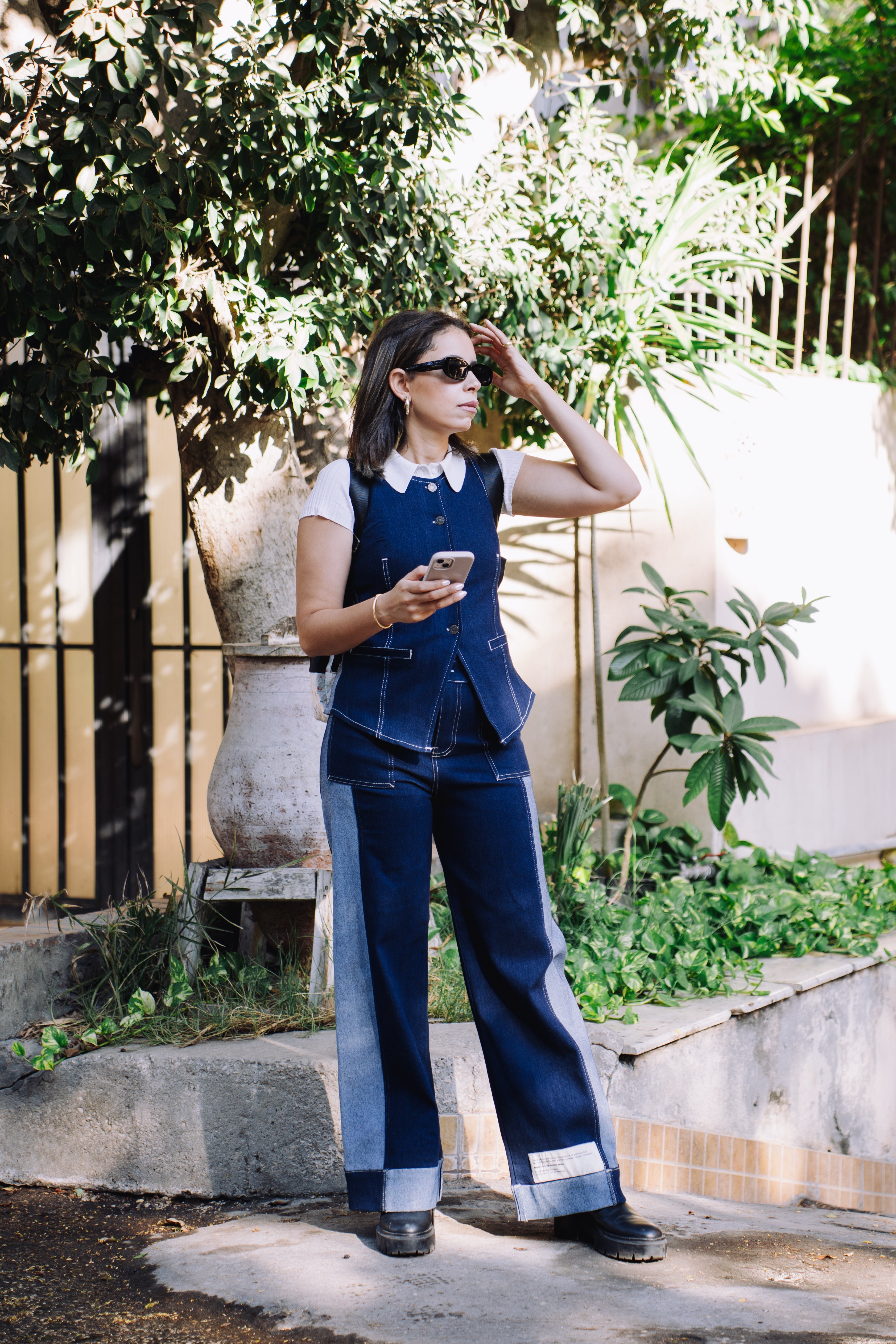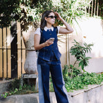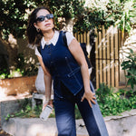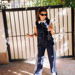Embrace the art of modern tailoring with the Two-Tone Denim Vest. This refined yet daring piece captures the perfect balance of timeless craftsmanship and contemporary design. The bold asymmetric silhouette and meticulously constructed raw-edge detailing create an effortlessly chic aesthetic that defies convention. Expertly crafted from upcycled denim, this vest offers a structured yet fluid fit that drapes beautifully, allowing it to transition from day to night with ease.